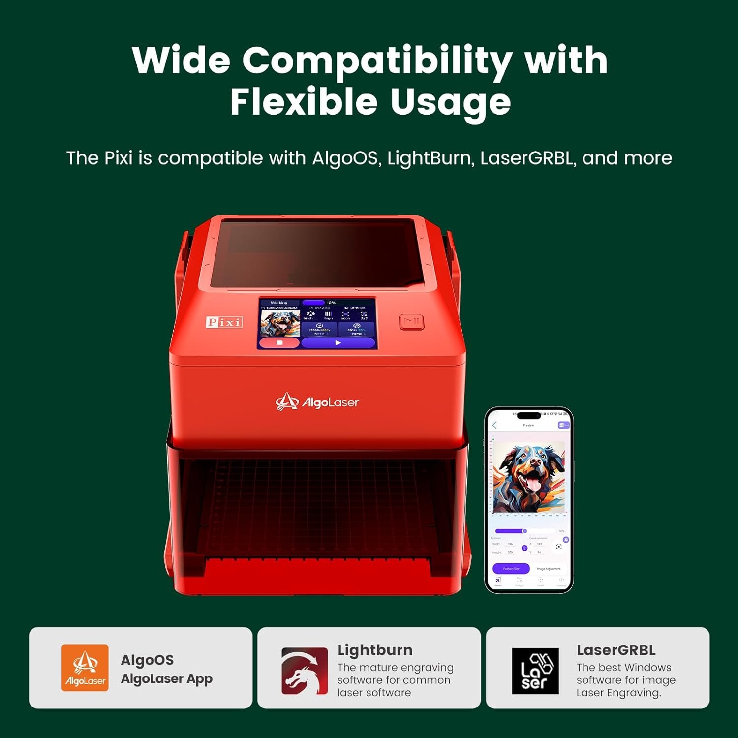 【Smart Laser Engraving with No Technical Barriers】 Bring your ideas to life with the AlgoLaser Pixi 5w Laser Engraver Machine, powered by the advanced AlgoOS system—no computer or complicated setup required. Simply draw, write, or upload your designs directly on the intuitive touchscreen and start engraving instantly. This Smart Laser Engraver is perfect for small businesses customizing leather goods, logos, gifts, or home projects.