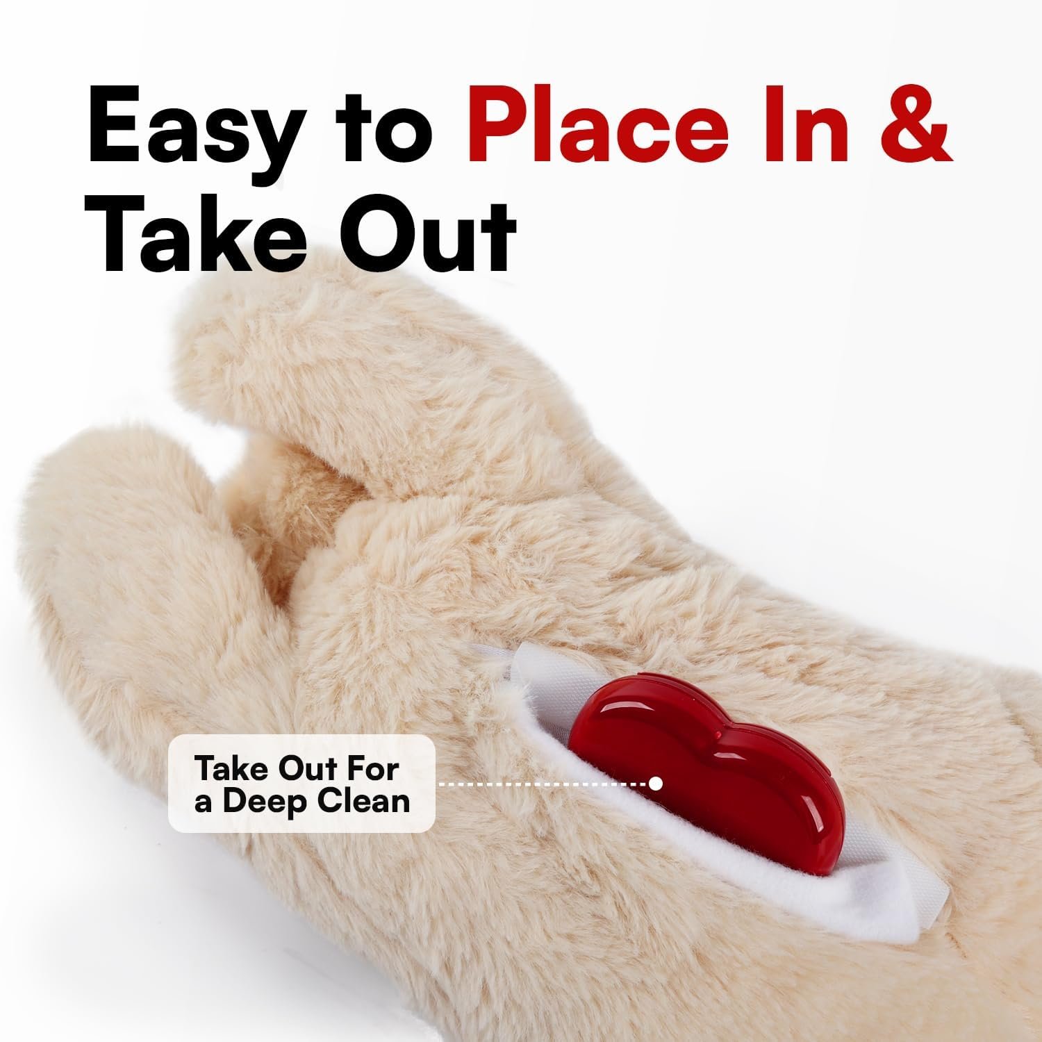 Heat Pack Included: The anxiety relief stuffed toy Includes a microwave-safe, reusable warmth pack, When heating in a microwave, place a cup of water next to it. Like all plush dog toys, it is not indestructible and may not withstand aggressive chewing. Please supervise your dog during use. This toy is not edible!