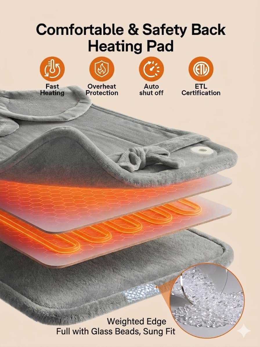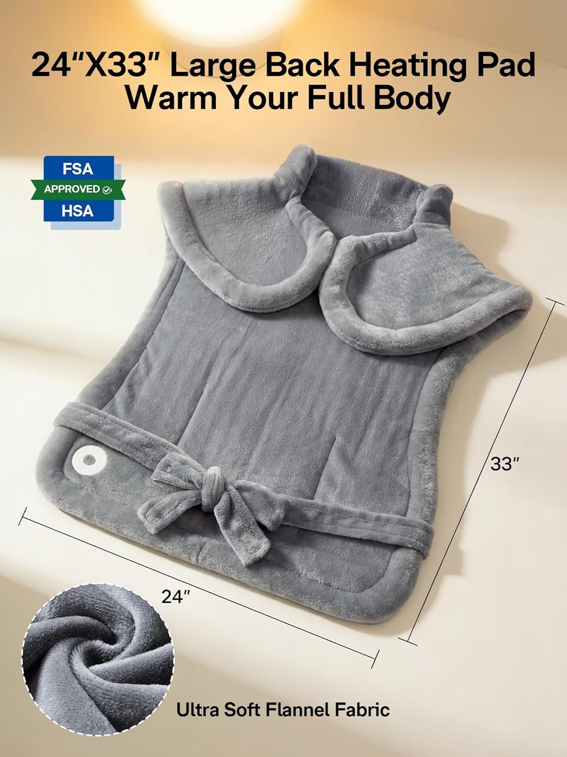 EXTRA-LARGE SIZE BACK HEATING PAD FOR BACK PAIN: This 24″ x 33 full body heating pad snug coverage around the neck, shoulders, and back with heat therapy to help relieve muscle pain and tension, this back heating pad can also be flexibly applied to the waist, abdomen, legs, and more