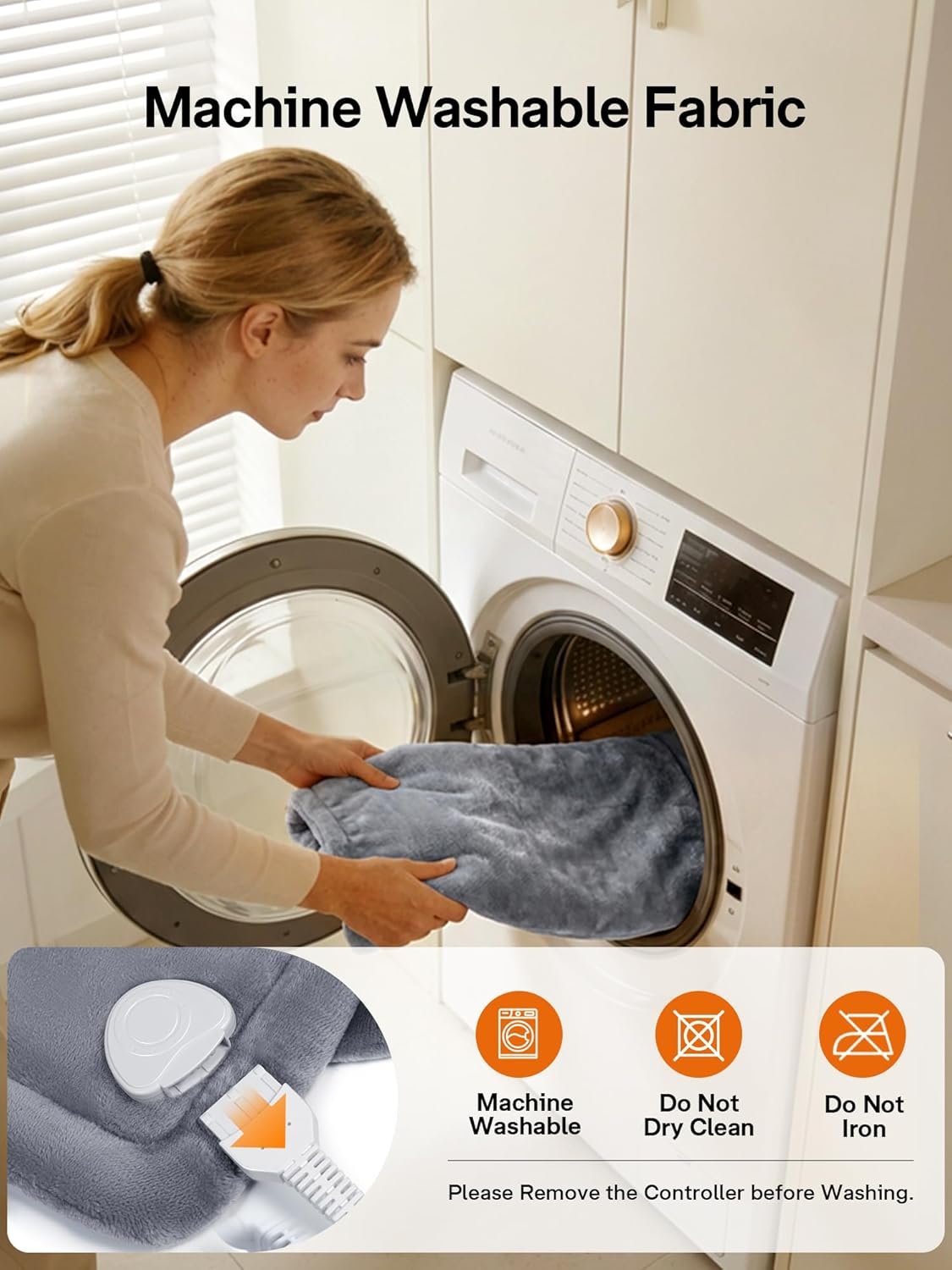 SUPER SOFT & EASY TO CLEAN: Microplush flannel fabric, skin-friendly and soft to the touch, helps spread heat more evenly. The ergonomics design makes this neck and back heating pad perfect for your body to maximum effect. In addition, the body heating pad is machine washable after removing the controller, prolonging service life with hygiene and softness