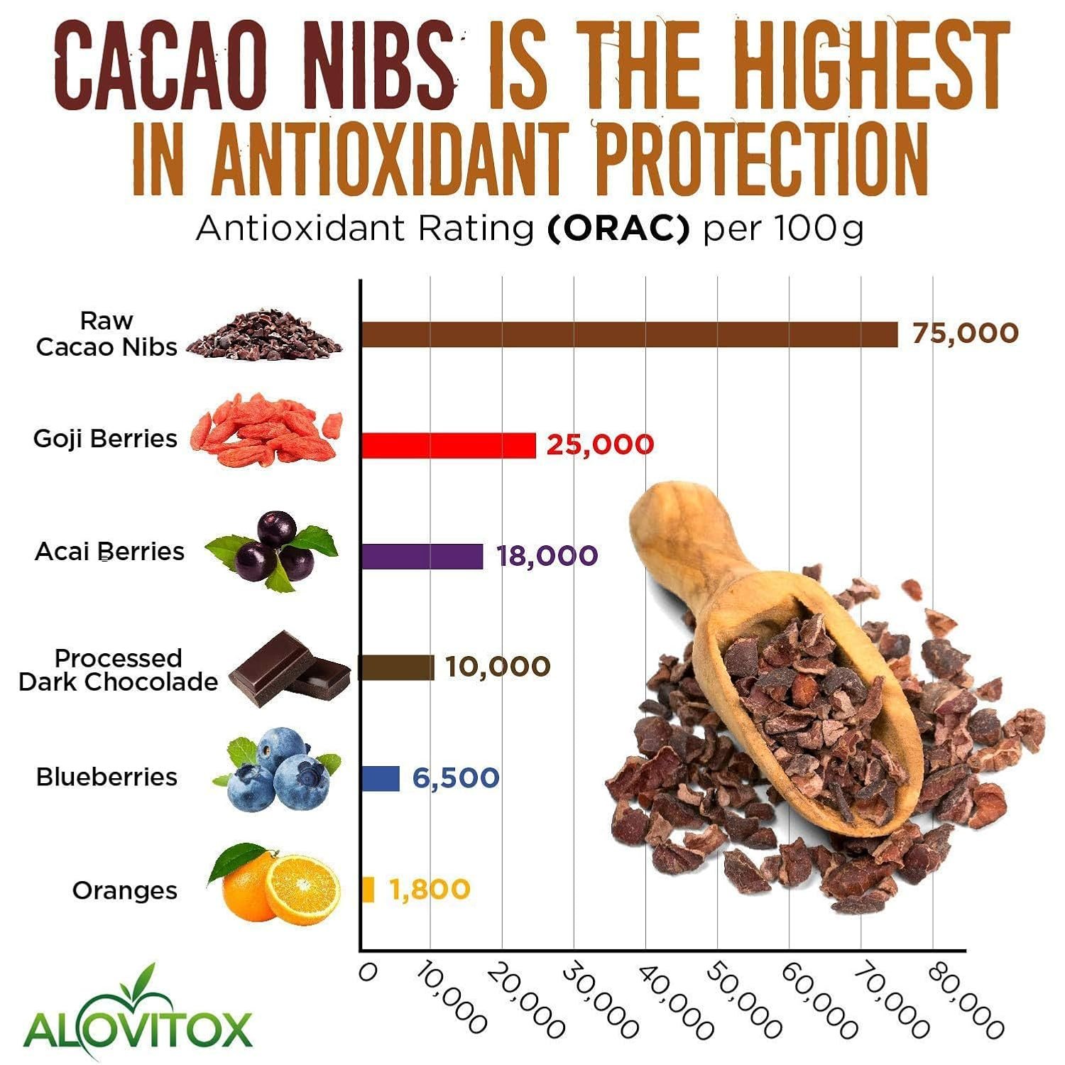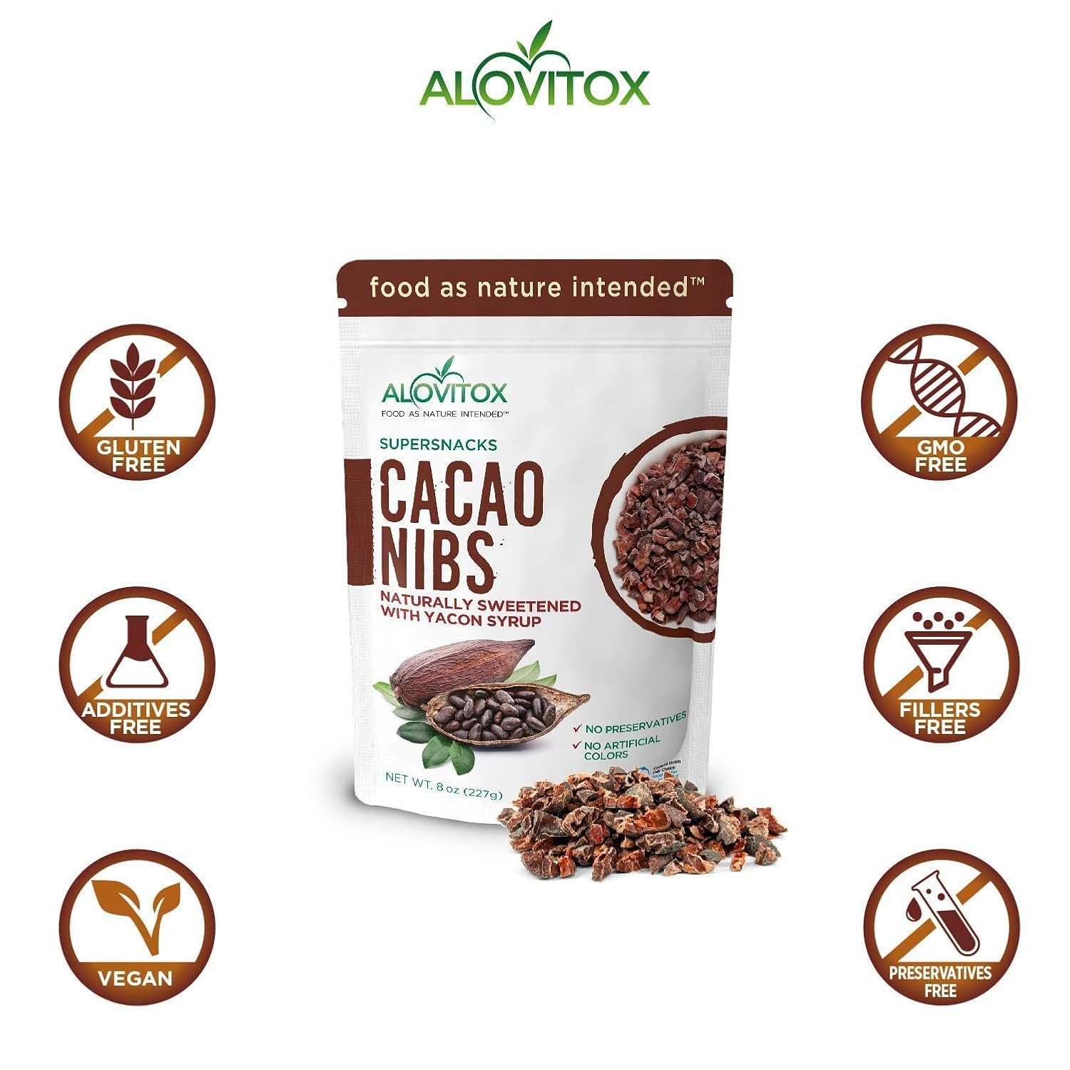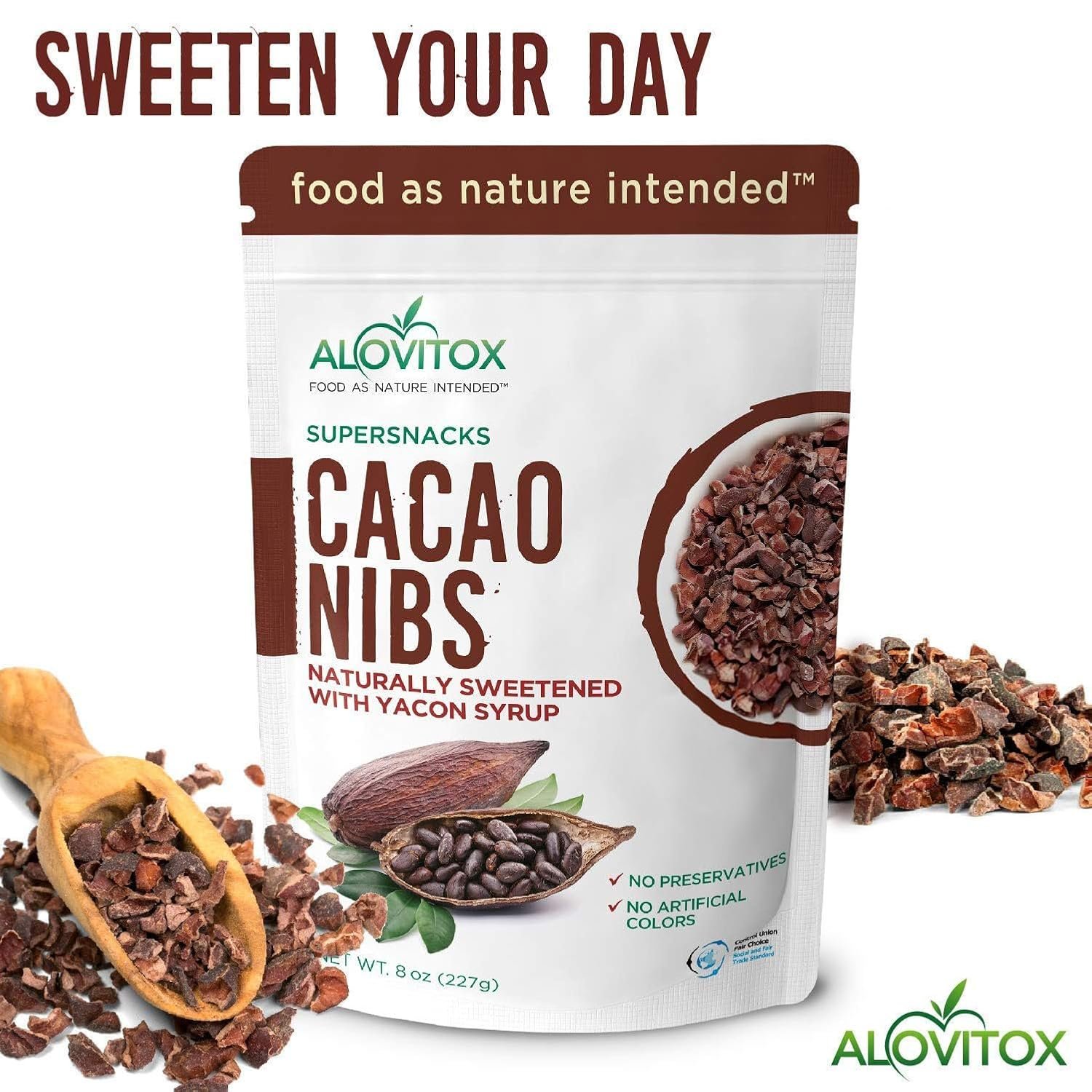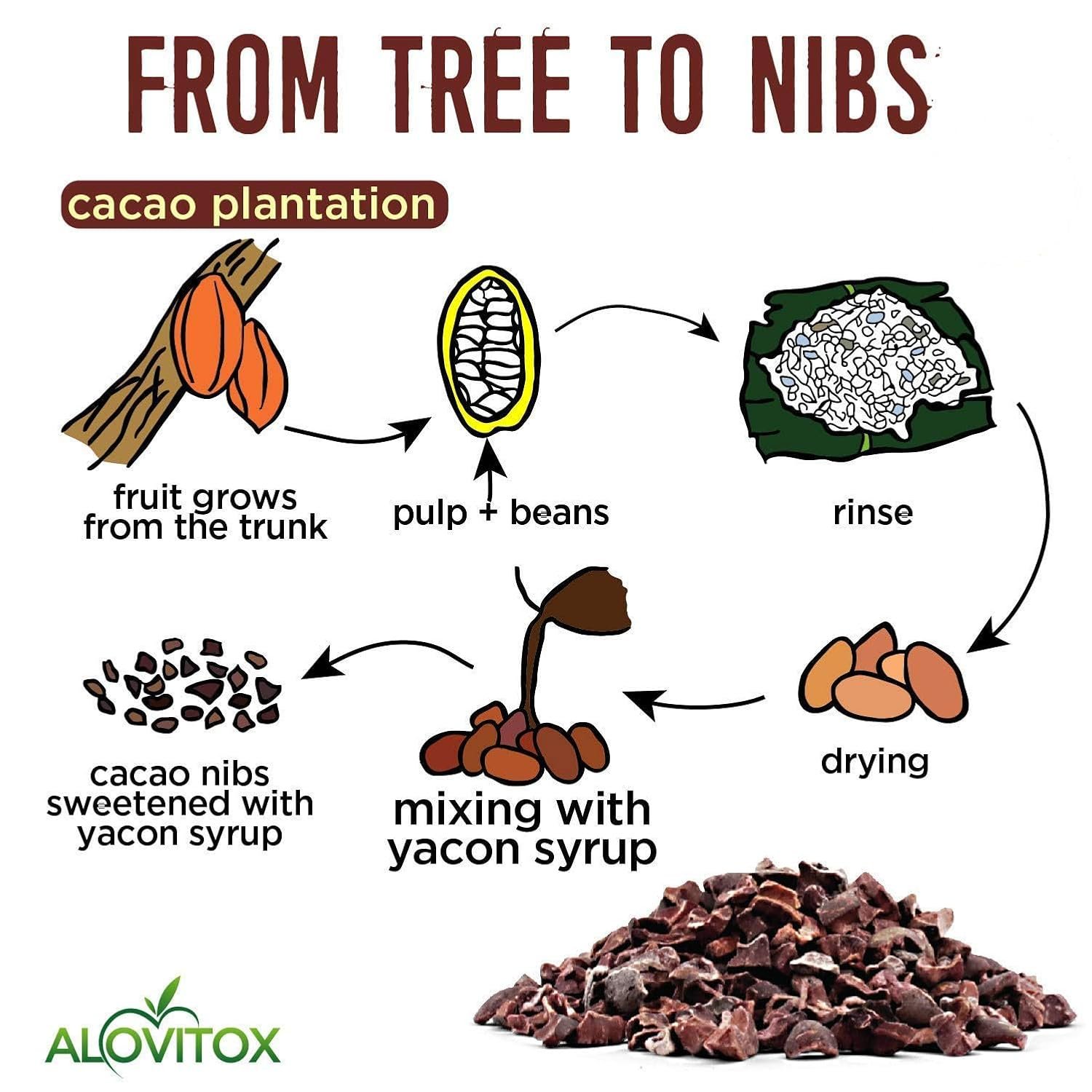 The use of raw cacao for health reasons dates back at least 3,000 years. Raw cacao beans make chocolate and contain anti-oxidants, as well as other vitamins and minerals like magnesium, calcium, zinc, iron, copper, manganese, potassium and sulfur. Yacon, the low calorie sweetener on our Alovitox Organic Cacao Nibs Sweetened With Yacon syrup- Natural Sweetener (ZERO SUGAR), Low Glycemic Index, Highest FOS-Keto Friendly-Vegan Gluten Free Non GMO product, is also nutritious. Yacon also has a low glycemic index, making it suitable for those with diabetes to also enjoy a sweet treat.