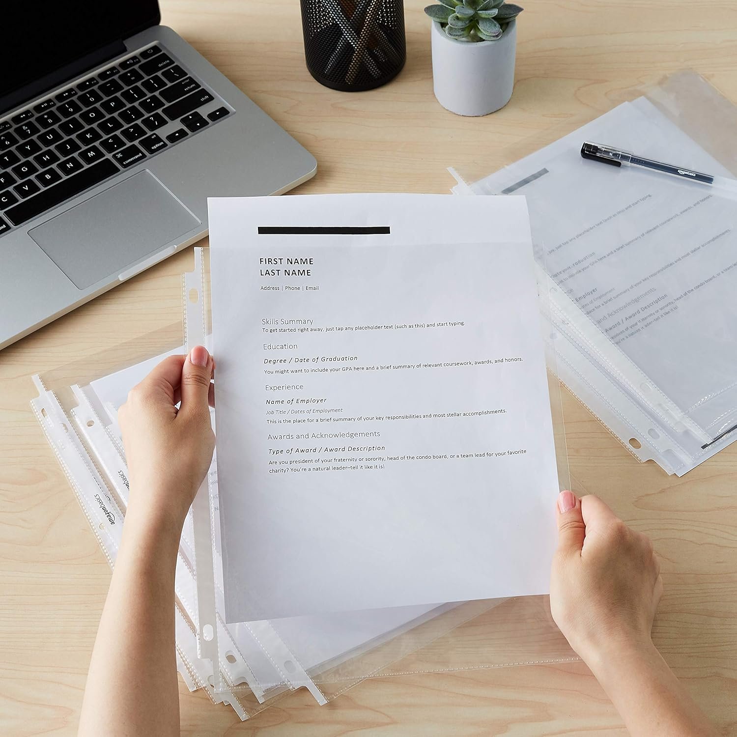 Amazon Basics Clear Sheet Protector for 3 Ring Binder, 8.5″ x 11″ – 100-Pack