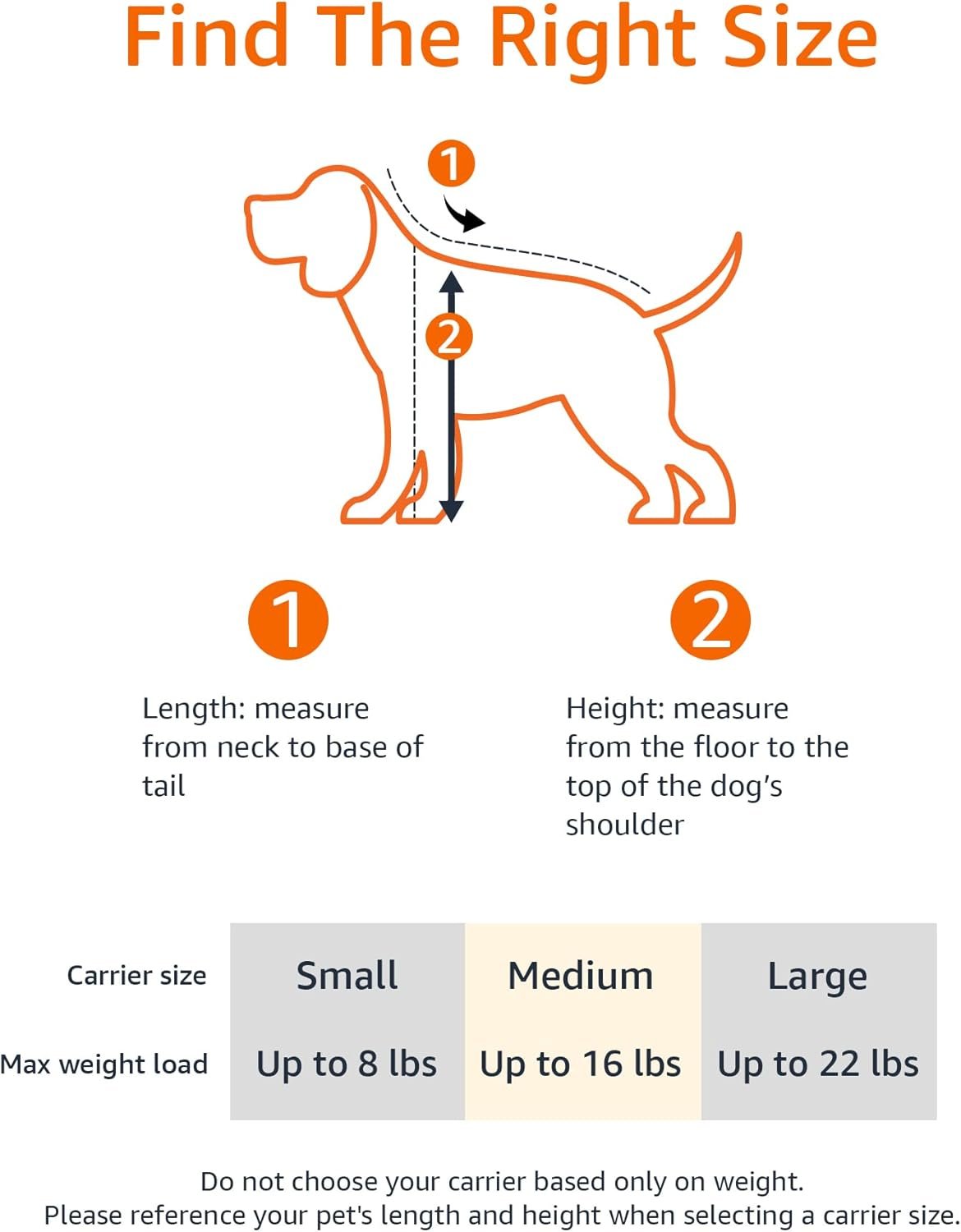 Recommended max load of 16 pounds; note: please choose carrier size by referencing animal’s length and height. If the animal is heavy, choose a size larger