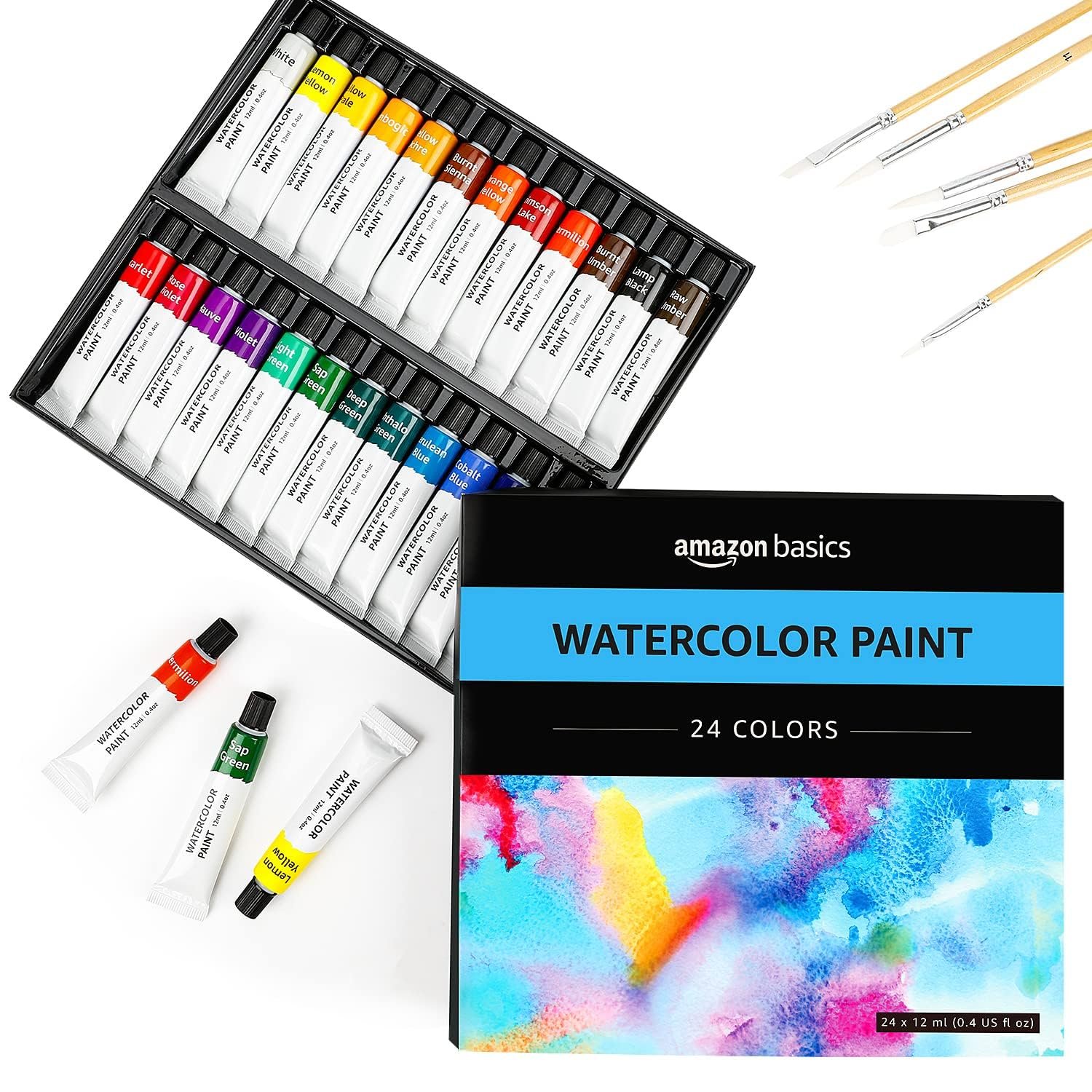Includes (24) 0.4-ounce easy-to-squeeze tubes of paint in 24 assorted colors, plus a storage/gift box