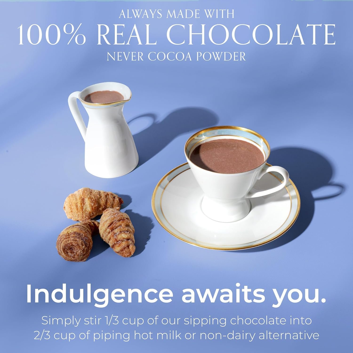 Pure European Chocolate, Zero Cocoa Powder – Indulge in the rich, velvety taste of 100% real European chocolate. Crafted without any cocoa powder, artificial flavors, or additives our sipping chocolate delivers an authentic, decadent experience that will satisfy even the most discerning chocoholics