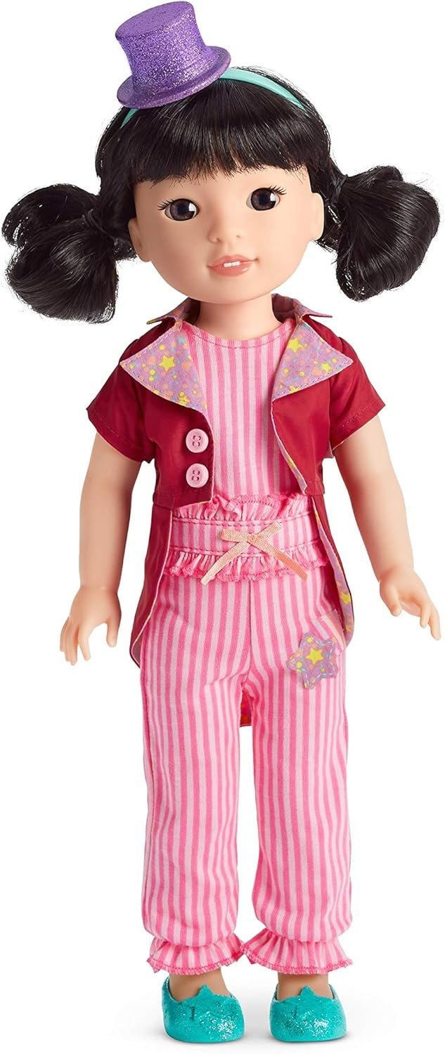 The 18″ Truly Me doll has lifelike hazel eyes that open and close smoothly, realistic wavy dark-brown hair with bright rainbow highlights that can be styled, tan skin with neutral undertones on a soft cotton body, and a movable head and limbs made of smooth vinyl. She arrives with: Dolls sold separately.
