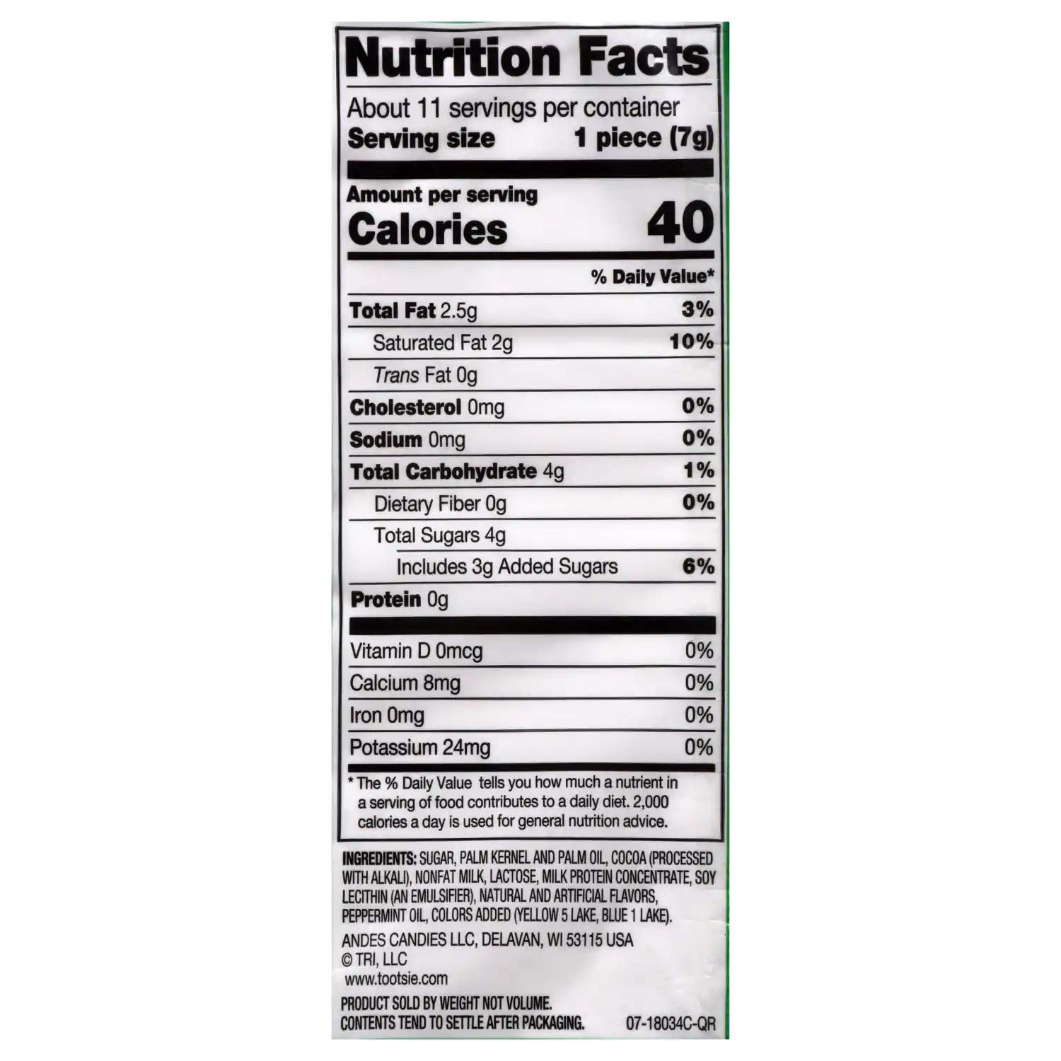 Andes (1) Bag Creme De Menthe Thins – Individually Wrapped Mint & Dark Chocolate Candy Pieces – Peanut Free & Gluten Free – Net Wt. 2.75 oz