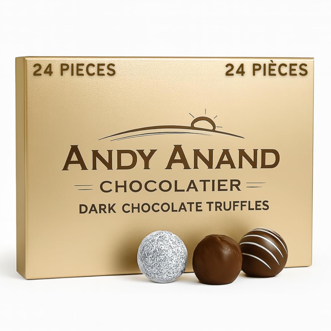 LUXURIOUS BELGIAN DARK CHOCOLATE TRUFFLE ASSORTMENT: Enjoy 24 handcrafted Belgian dark chocolate truffles with smooth, flavor-inspired centers, elegantly boxed for a refined gourmet indulgence.