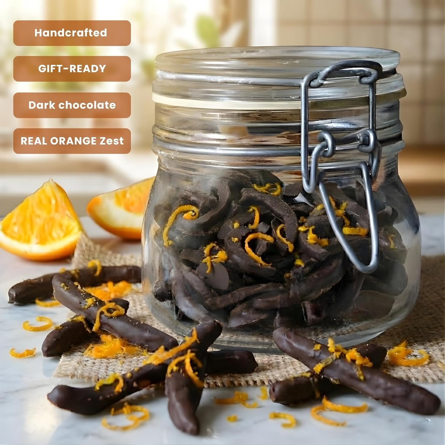 IRRESISTIBLE FUSION OF BELGIAN CHOCOLATE & CITRUS ZEST: Delight in the bold richness of premium dark Belgian chocolate, beautifully balanced with the vibrant tang of real orange peels and chocolate drenched orange sticks. A sophisticated treat bursting with flavor.