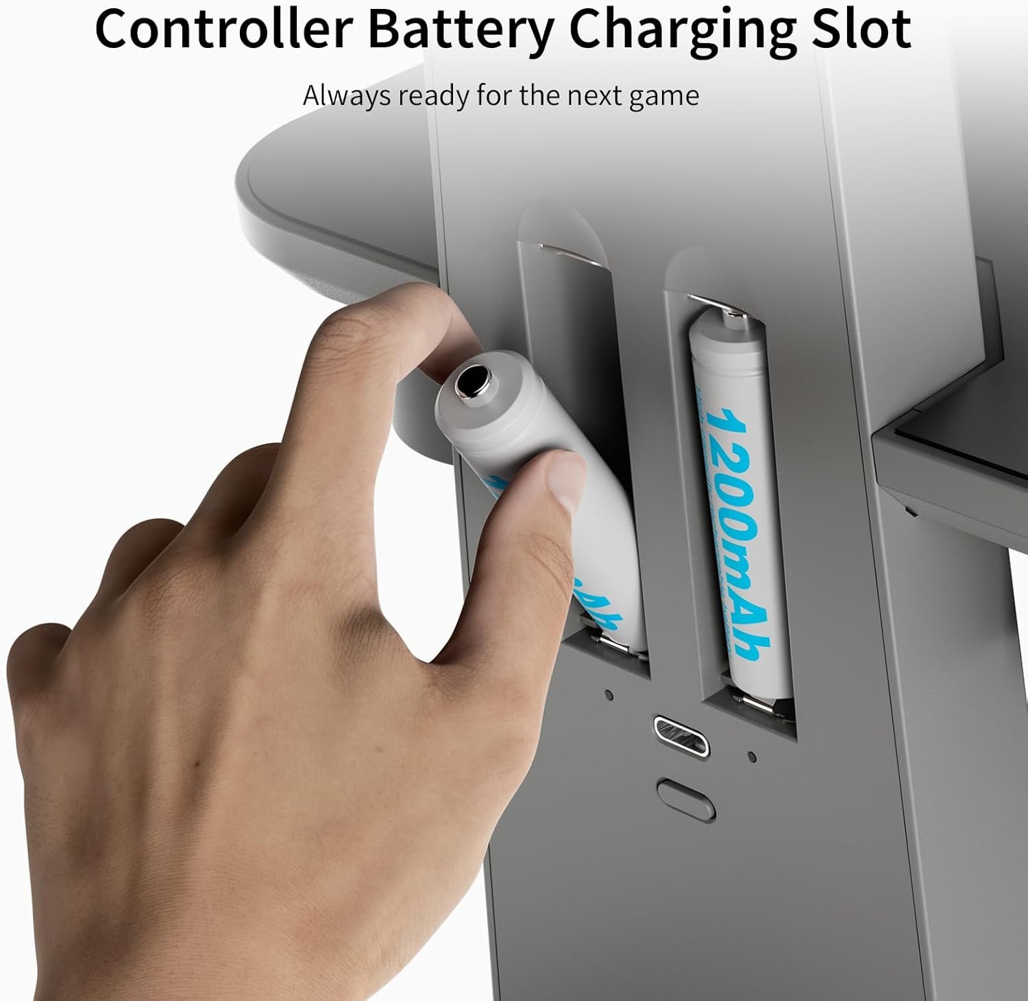 Controller Battery Charging Slots: The charging station comes with two 1200mAh rechargeable batteries, keeping your controllers fully charged and ready at all times! Note: The battery charging slots are compatible only with NiMH or NiZn batteries