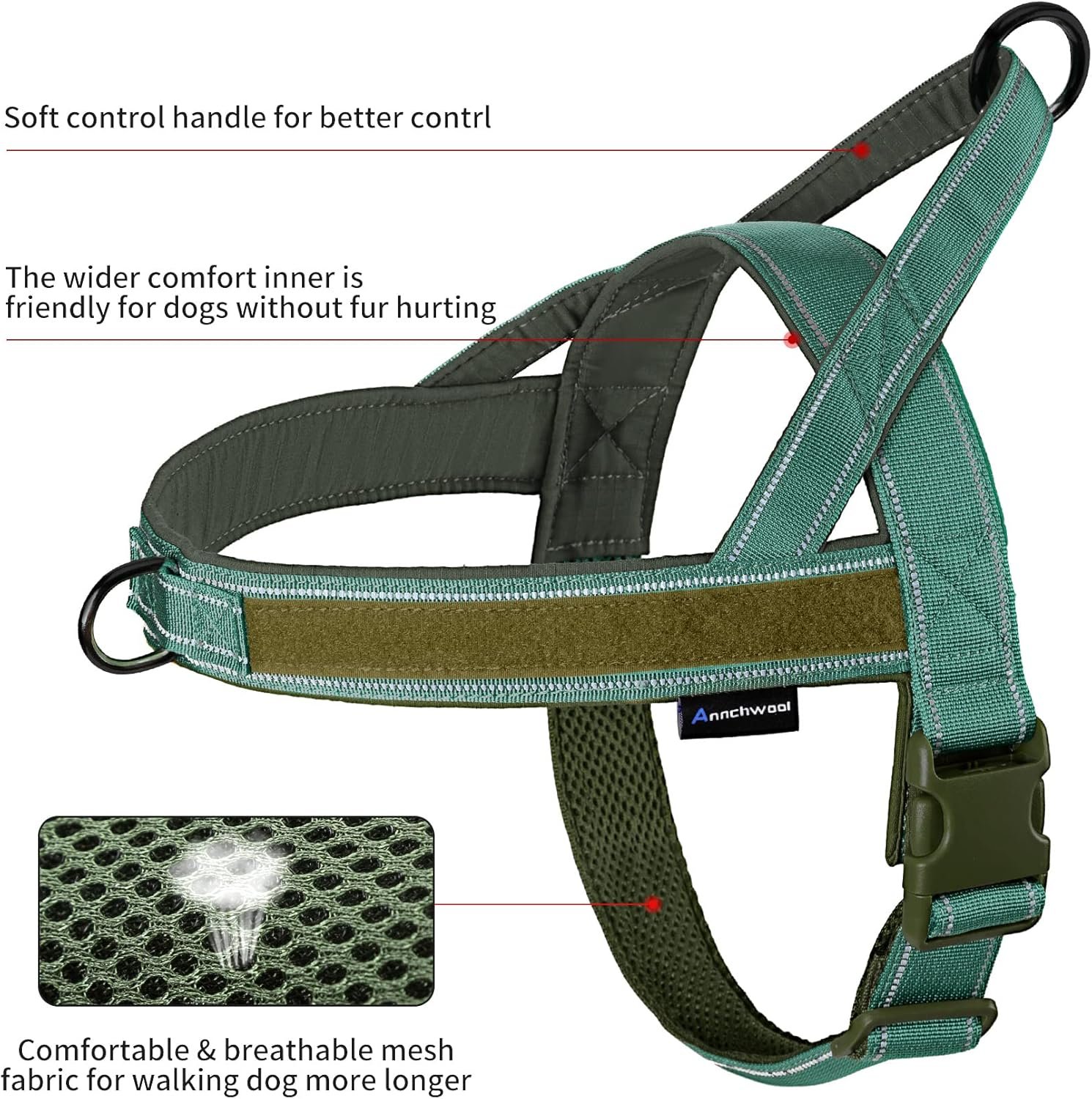 *Annchwool no pull dog harness is comfortable and easy to put on/off that the dog will enjoy the daily walking without constraint.
