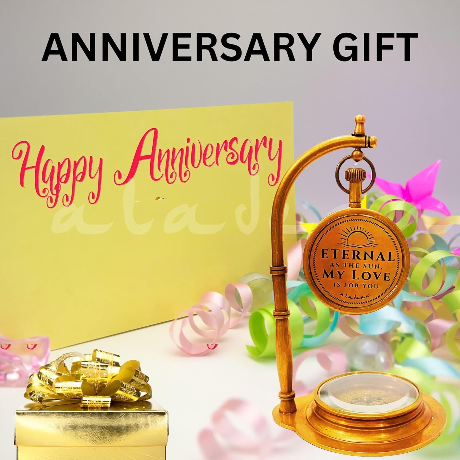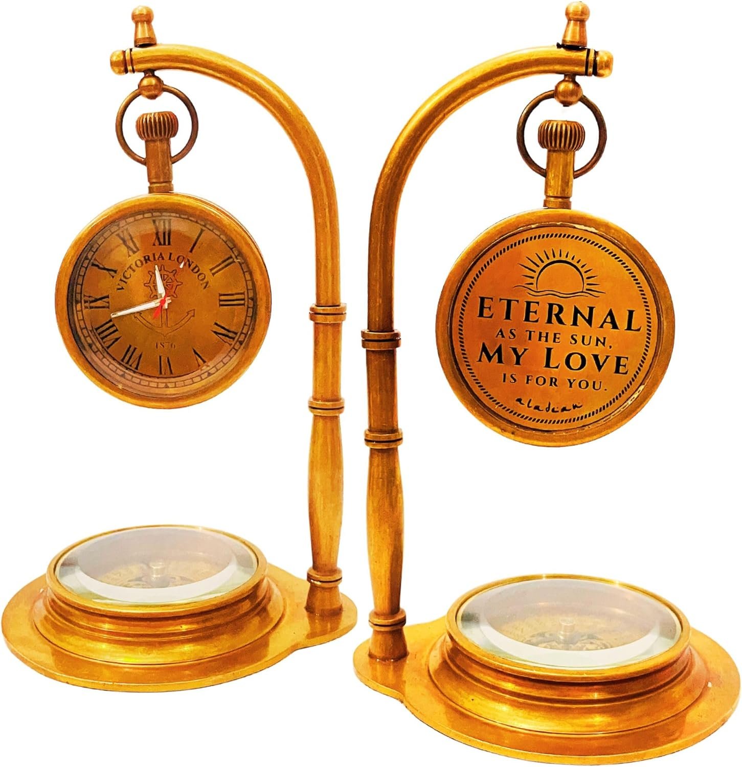 Timeless Romantic Anniversary Gift Table Clock: This handcrafted brass table clock with a functional compass is the perfect keepsake for celebrating love, making it an ideal gift for anniversary, weddings, and special occasions.