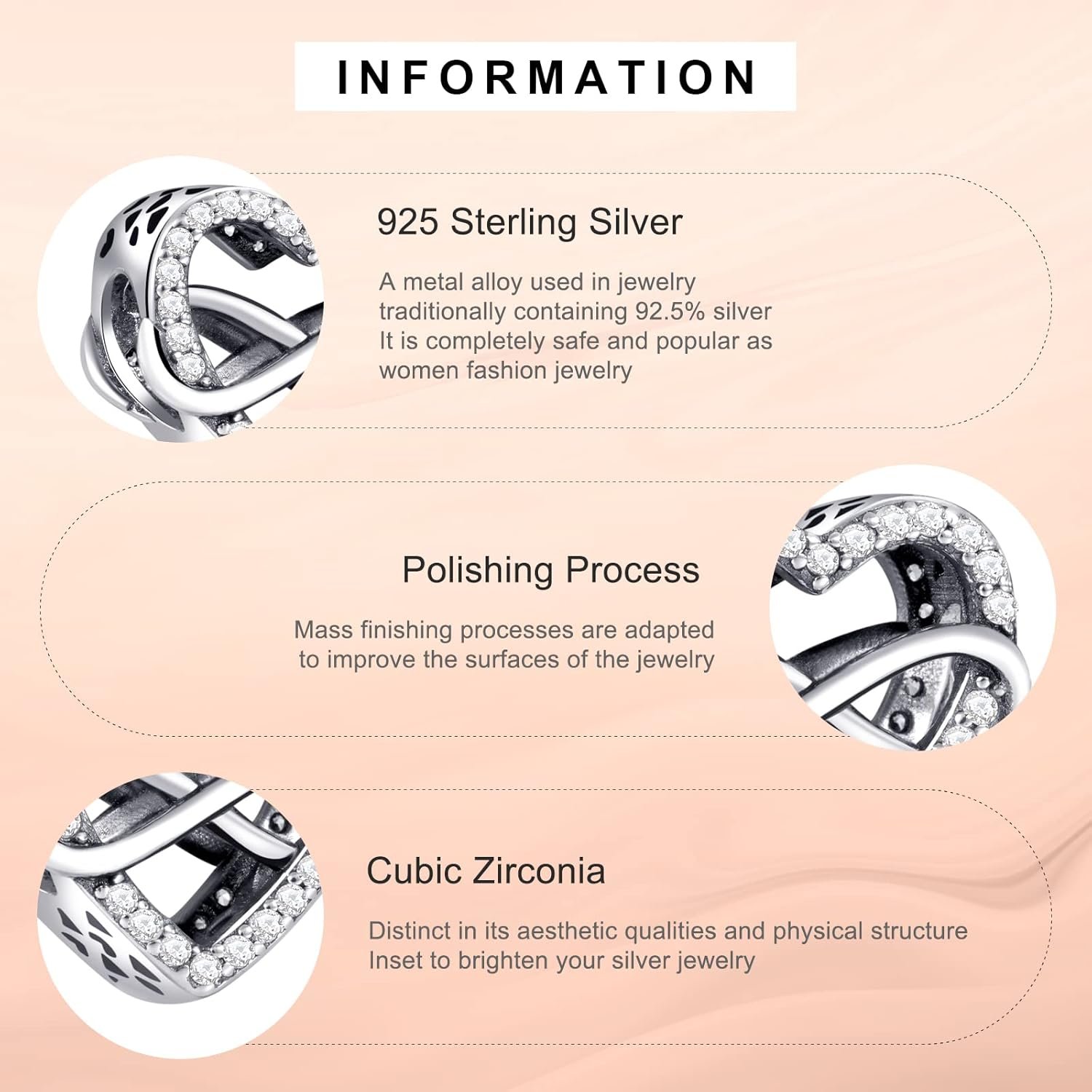 Our jewelry are made of genuine high-grade material, as long as the proper maintenance, ensure wearing years still bright as new.