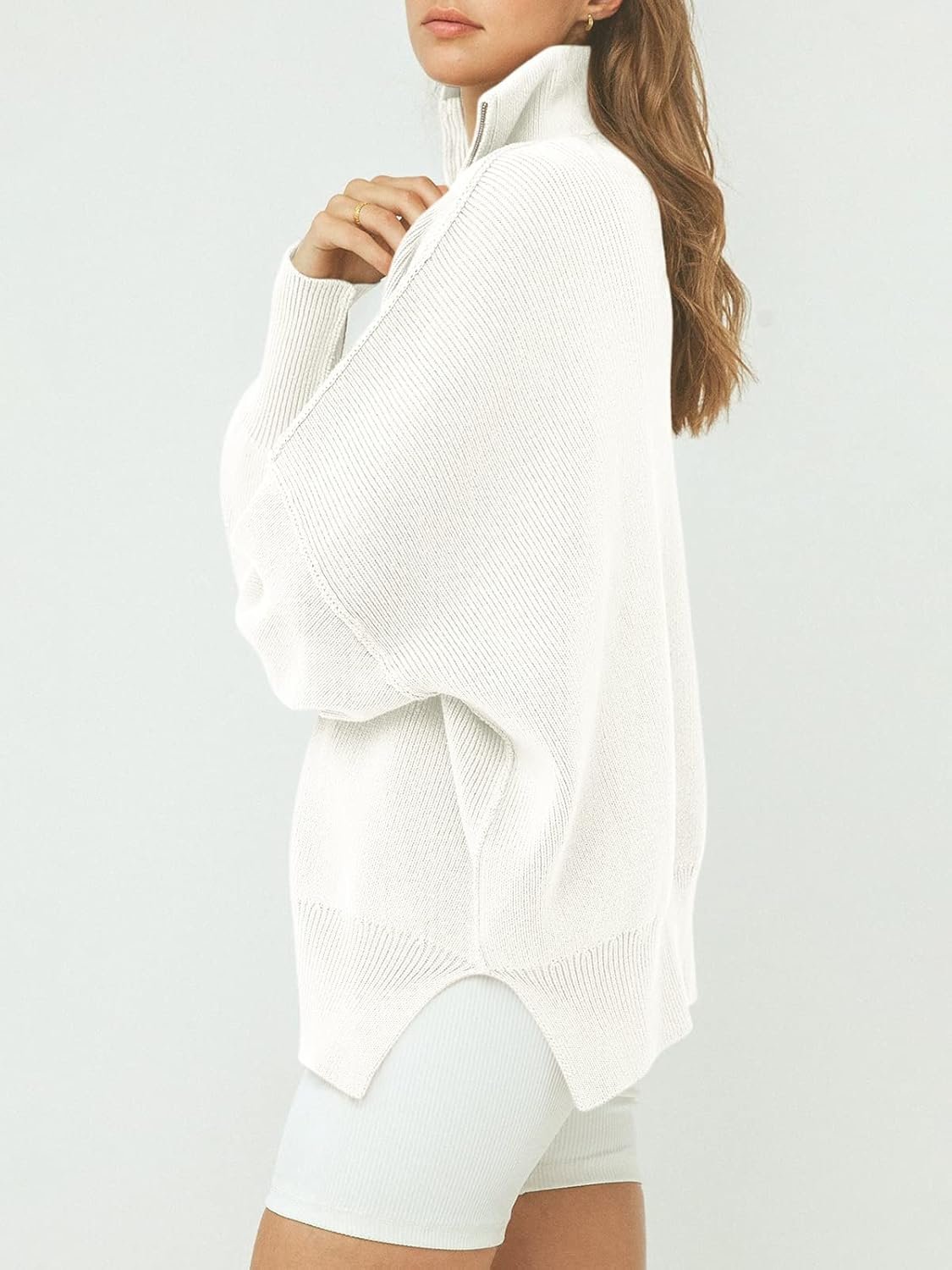 1/4 Zipper CollarDrop ShoulderRibbed Knitoversized fit