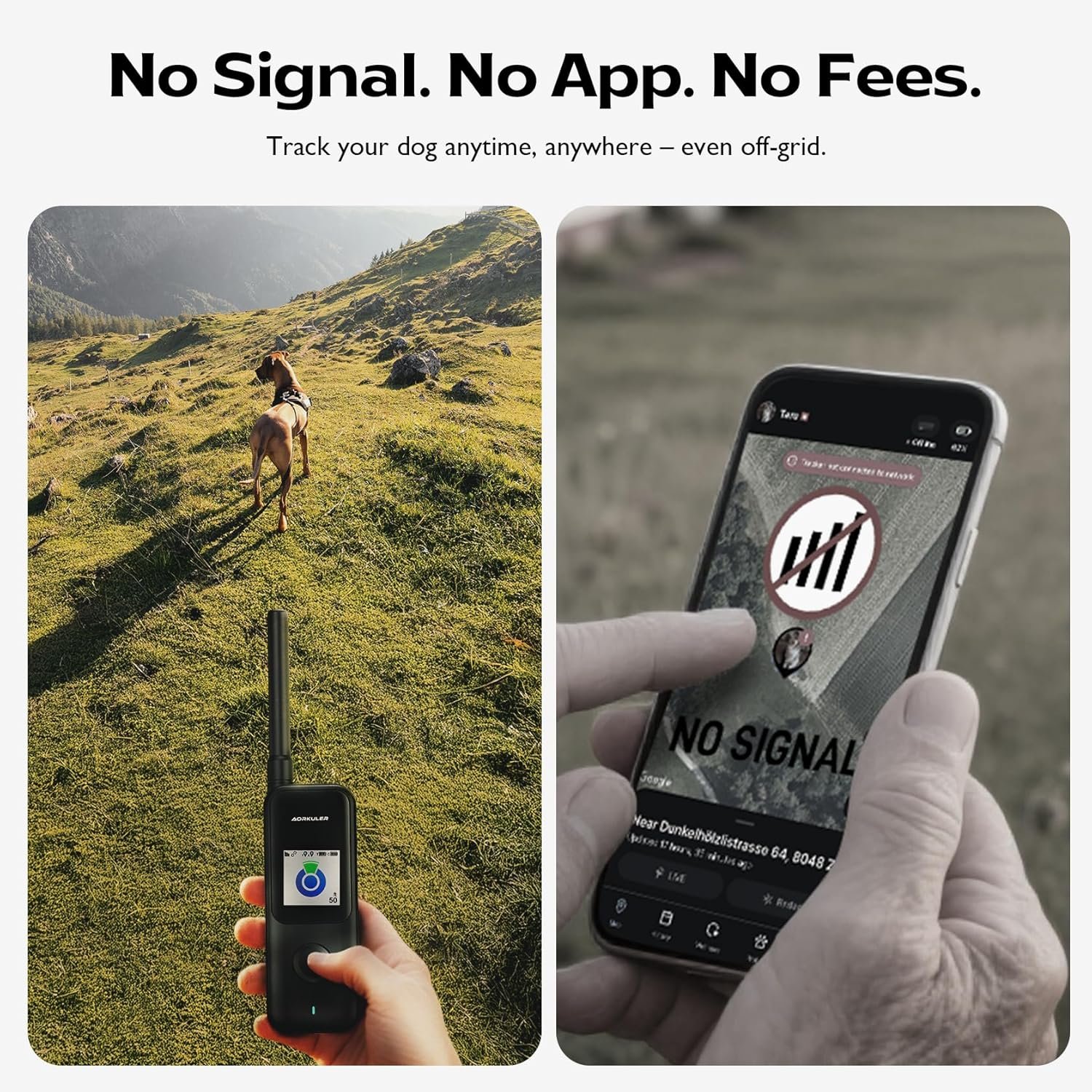 No App, No Subscription, Full Privacy: The Aorkuler Pet GPS Tracker works without any app and does not collect or share your data. Your dog’s location is only sent between the tracker and the controller. No fees, no accounts, no personal information needed—just simple, worry-free tracking.