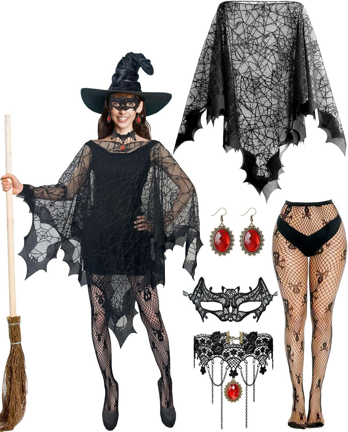 Be the first to review “Apragaz Halloween Costume Women, 5 Pcs Halloween Costume for Women with Black Spiderweb Poncho, Net Tights, Necklace, Mask and Spider Red Earrings for Halloween Cosplay Party”