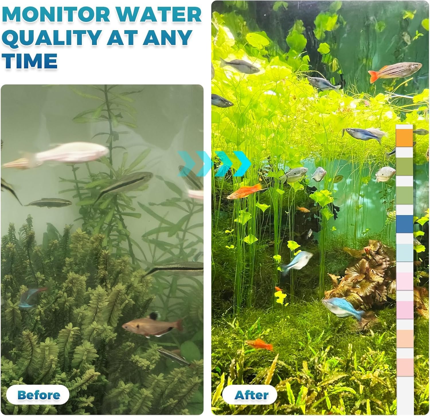 Affordable 200CT Aquarium Water Test Strips: Experts recommend testing your aquarium water at least twice a week to maintain optimal water quality; For accurate data, you can use a few strips for each test; 200 strips is enough to monitor your aquarium’s water quality for a year, only 0.08$ per test