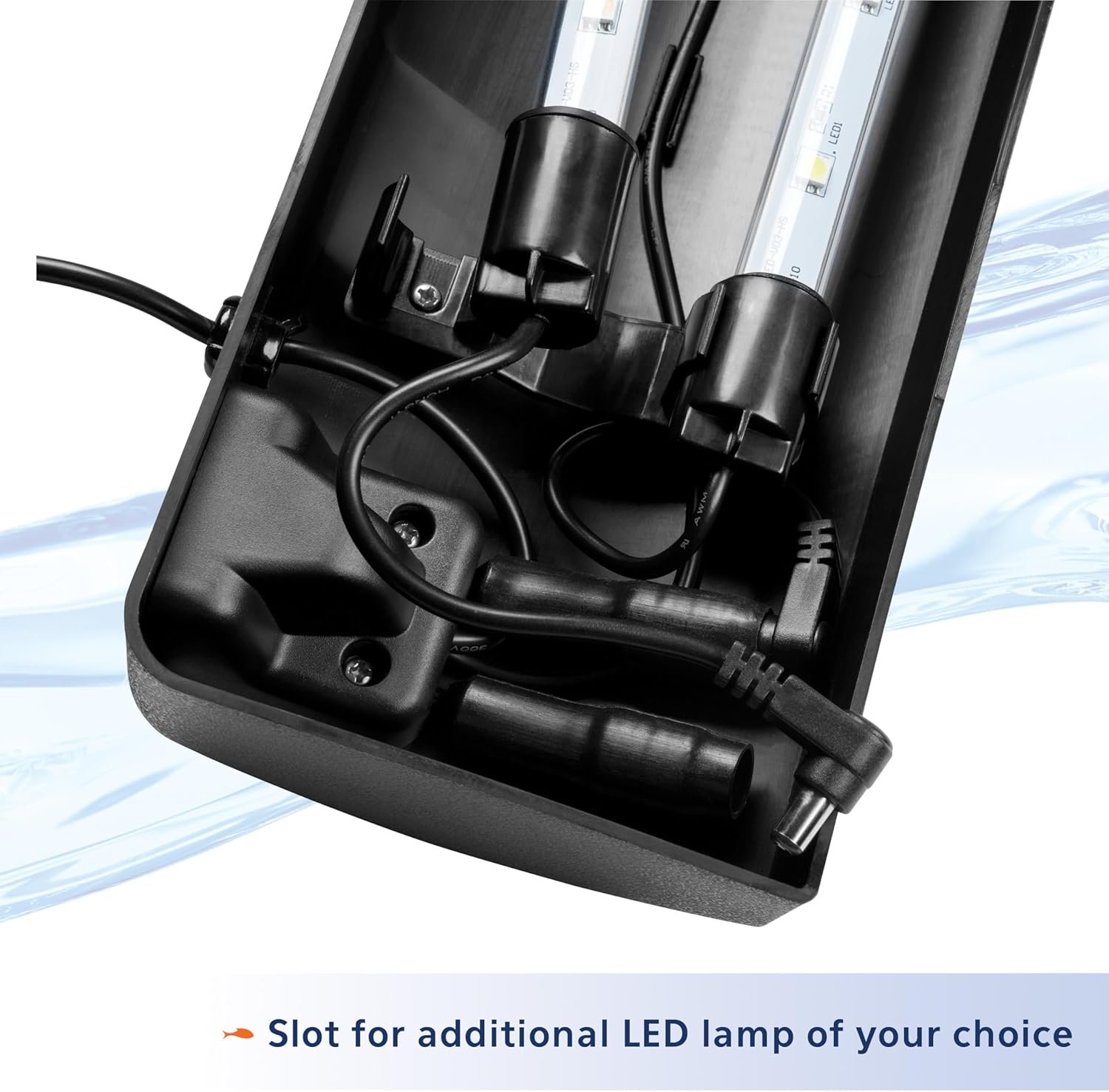 Aqueon LED Strip Lights are meant for use with glass covers or they can fit into existing Aqueon hoods. Strip lights are low-profile and use Aqueon Modular LED lamps available in a variety of colors. Each fixture comes preloaded with one Day White LED lamp with an expansion slot to add a second LED lamp. Comes with moon glow accent LED light and three-way switch to turn LED lights on, turn everything off or to turn the moon glow accent on. Ideal upgrade to an incandescent or fluorescent strip light fixture.