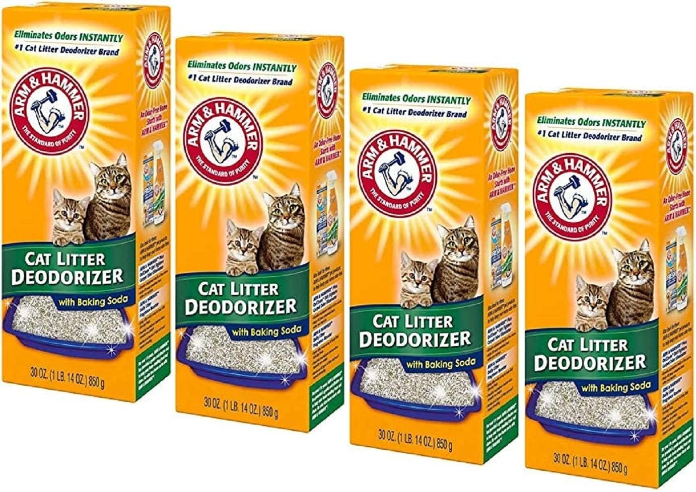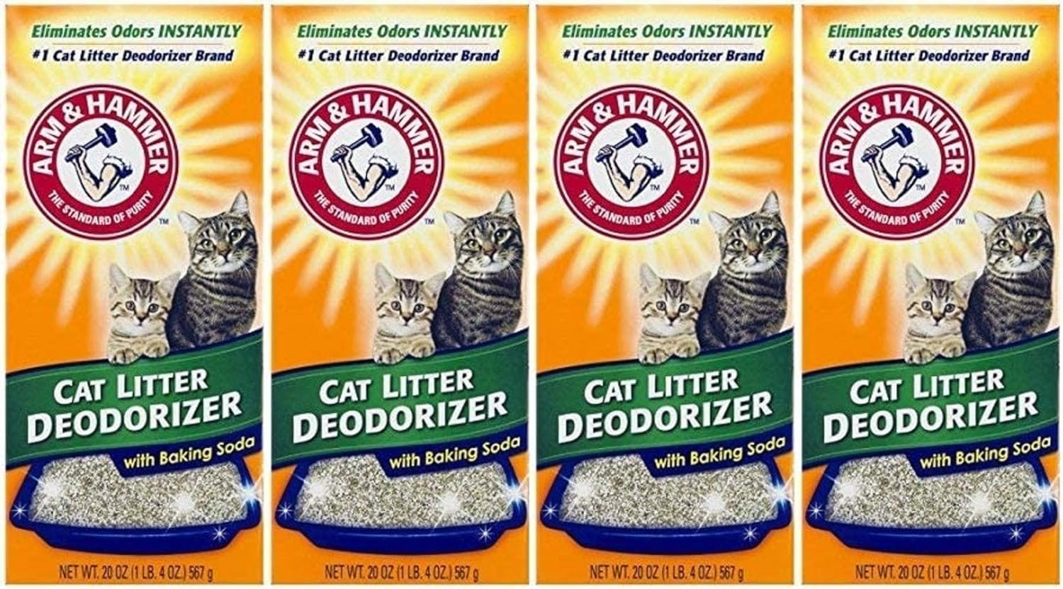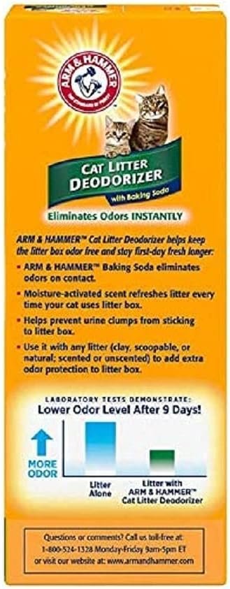 Finally, a lightweight litter that doesn’t act lightweight. Arm & Hammer Clump & Seal Lightweight Multi-Cat Litter is guaranteed to control odor for 7 days, is 50% lighter and is 100% dust free. This revolutionary cat litter first seals and then destroys odor on contact with a powerful formula of heavy duty odor eliminators plus Arm & Hammer Baking Soda. Pack of 4