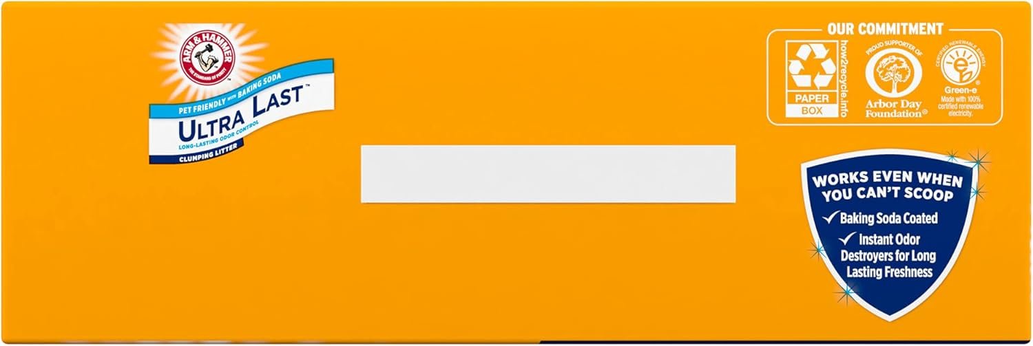 LONG-LASTING ODOR CONTROL. ARM & HAMMER Ultra Last Unscented Clumping Cat Litter includes Baking Soda granules with odor eliminators provide long-lasting odor control even when you can’t scoop the kitty litter box daily