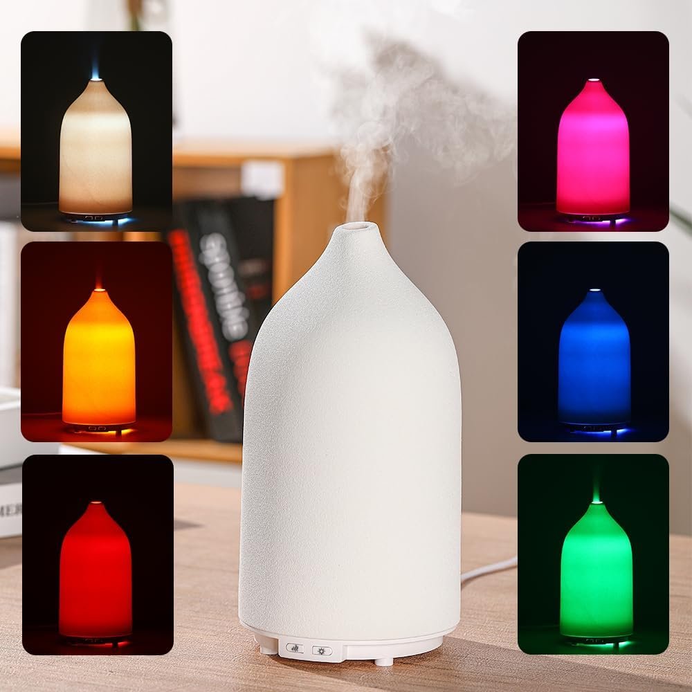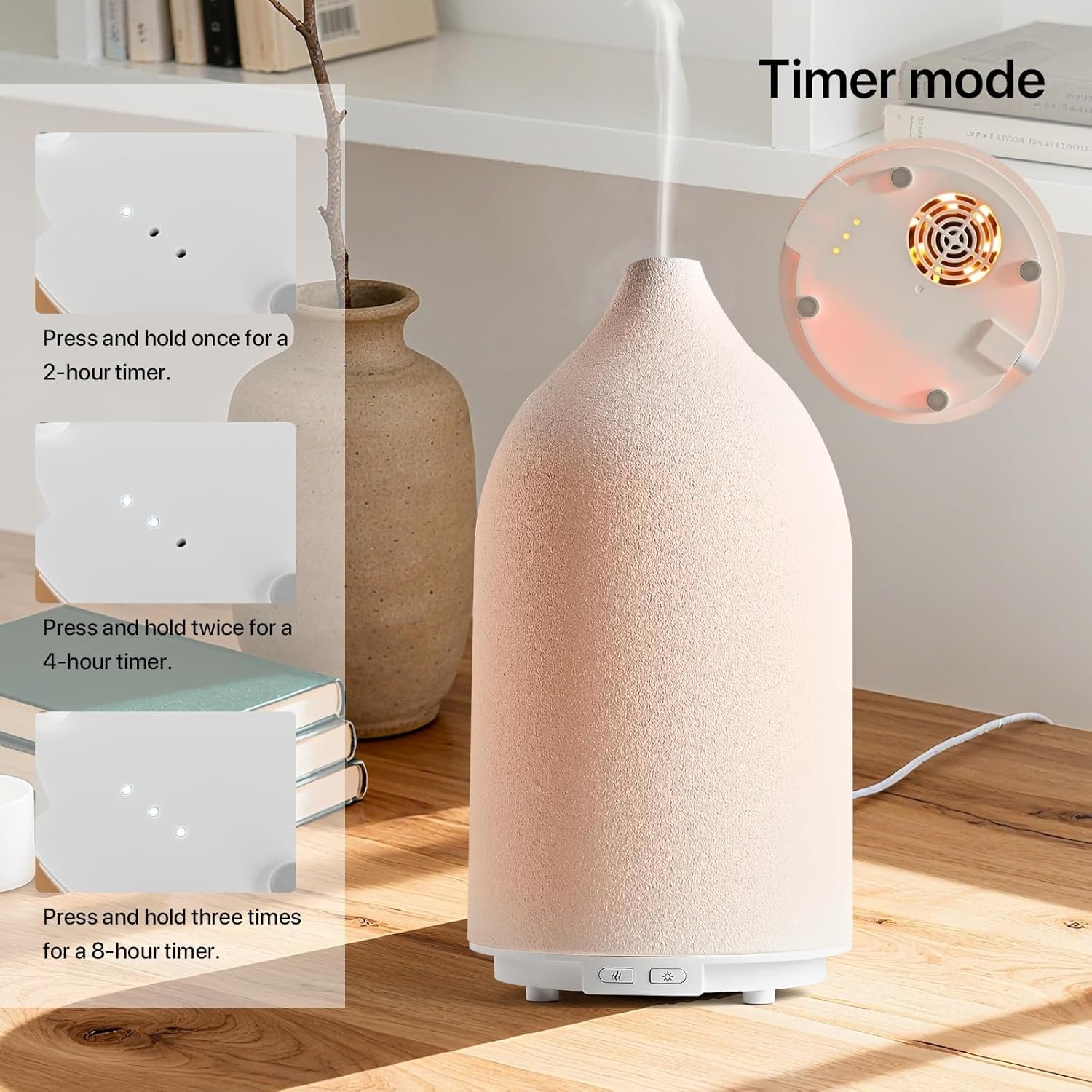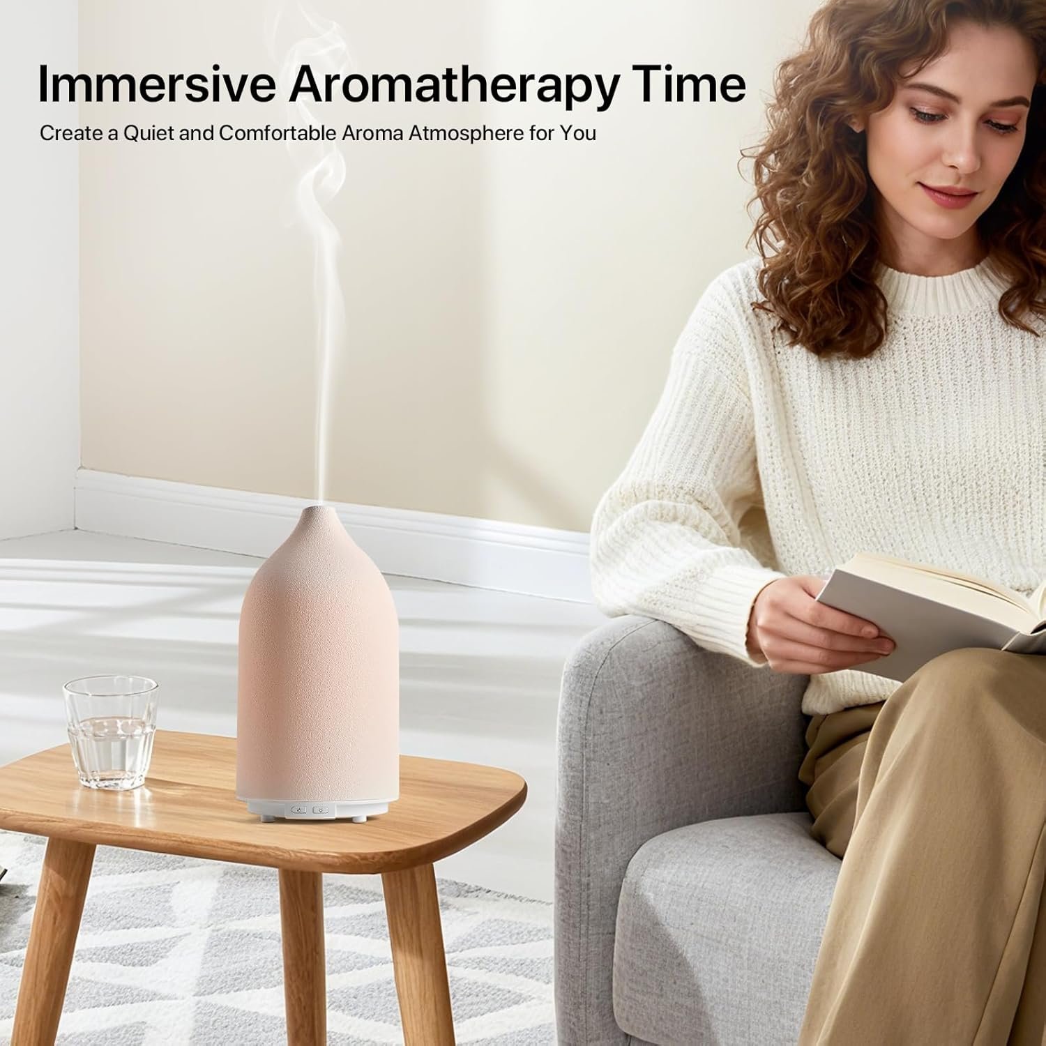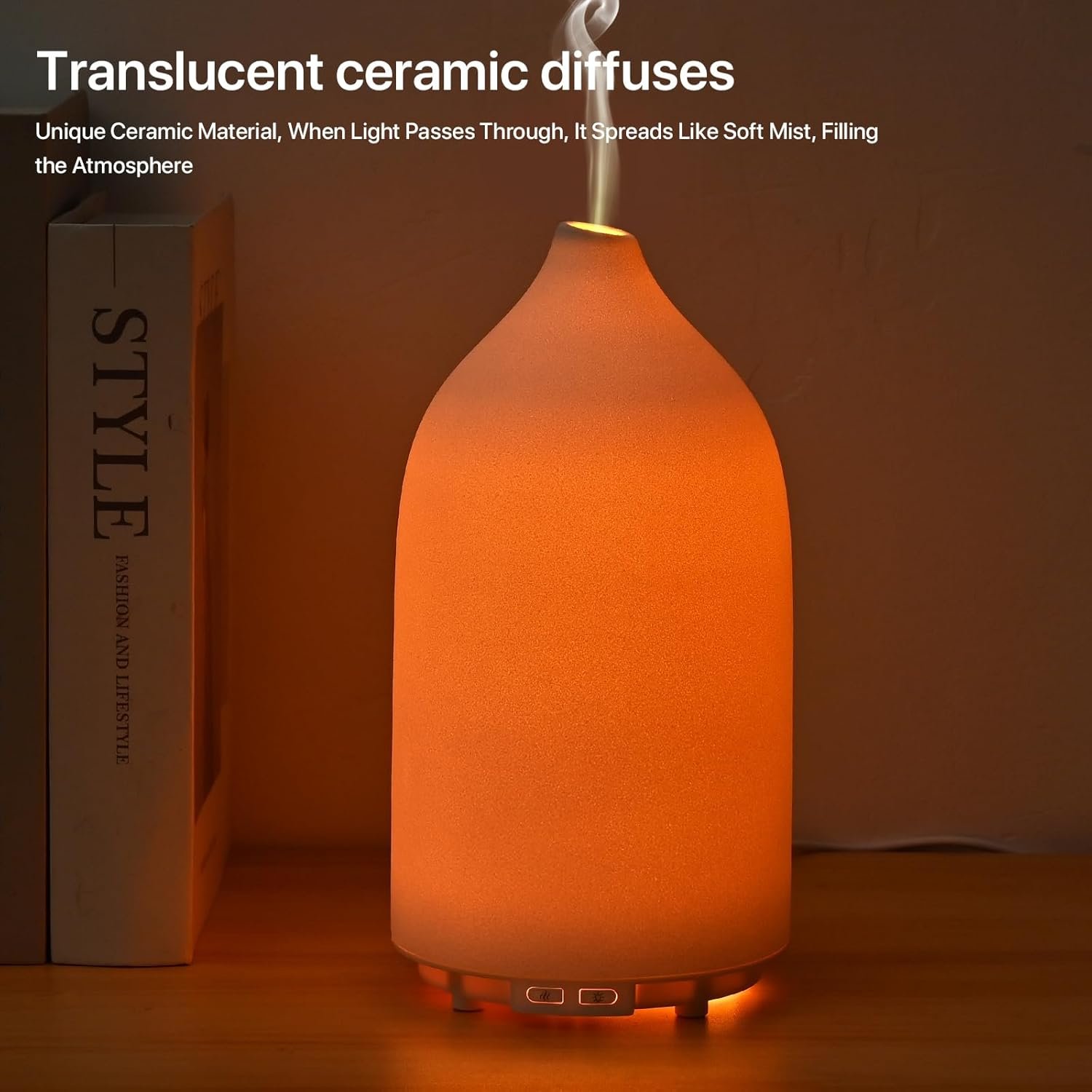 【Ceramic Essential Oil Diffuser】: handmade ceramic housing ensures safe heat dissipation and a natural, non-toxic surface, a family-friendly pick for bedrooms/nurseries.