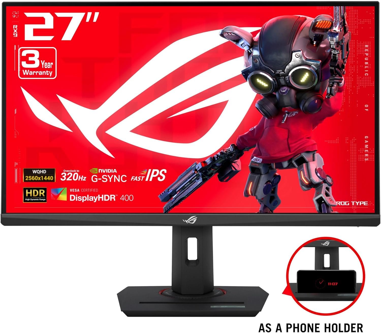 27-inch 2560 x 1440 HDR gaming monitor with ultrafast 320Hz (OC) refresh rate designed for professional gamers and immersive gameplay