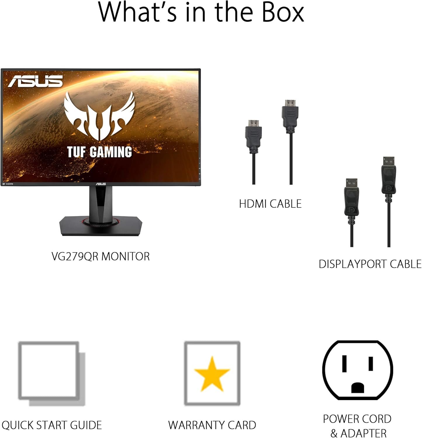 The 27-inch TUF Gaming VG279QR features a Full HD IPS display with fast 165Hz refresh rate designed for fast paced gameplay. Certified as G-SYNC Compatible, it delivers a seamless, tear-free gaming experience and with Extreme Low Motion Blur technology, it enables a 1ms response time for sharp gaming visuals.
