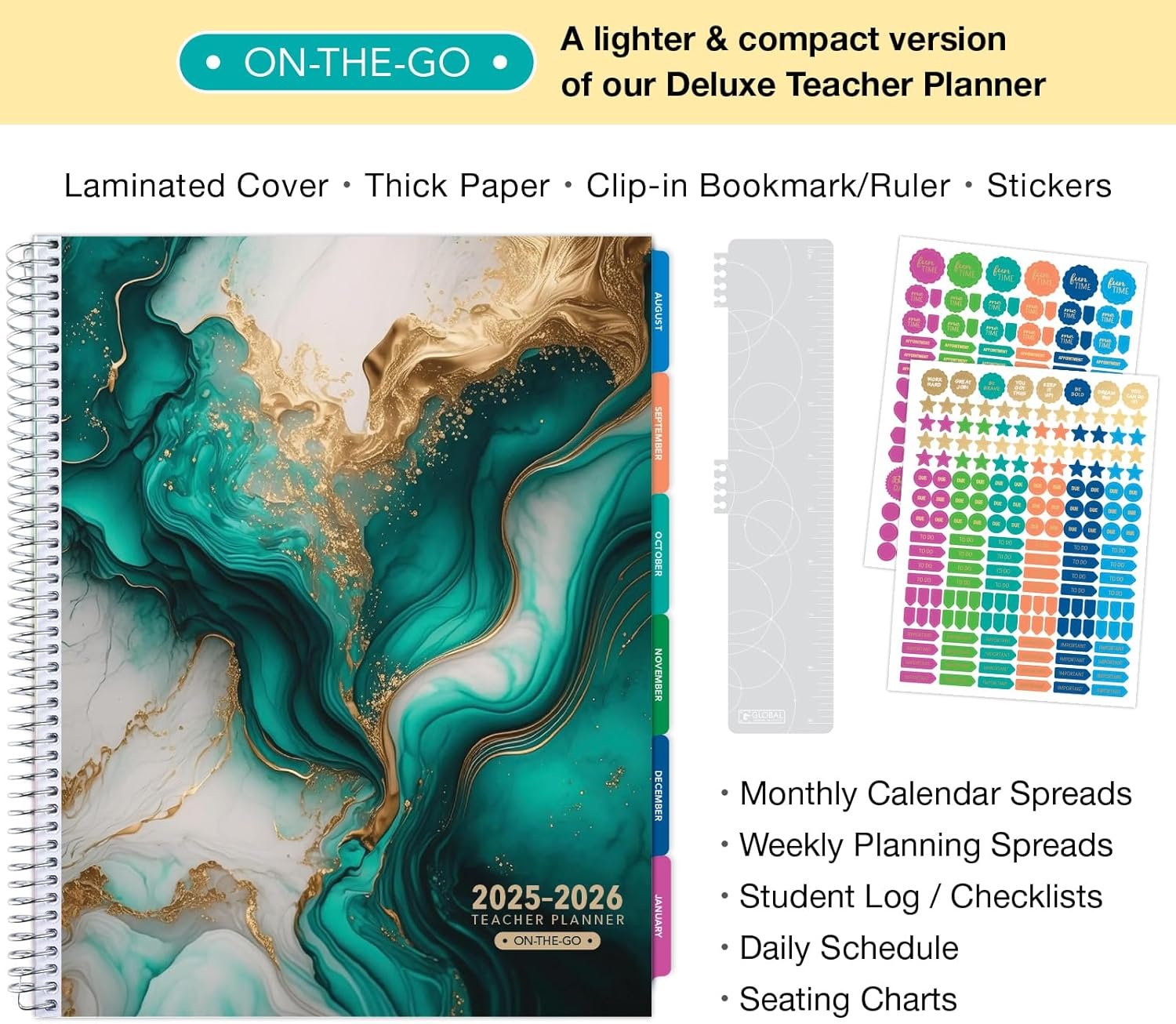 LIGHT-WEIGHT TEACHER PLANNER – This lightweight 8.5×11″ version of our Deluxe planner includes 7 Periods, Dated Calendar, Page Tabs, Bookmark, and Planning Stickers.
