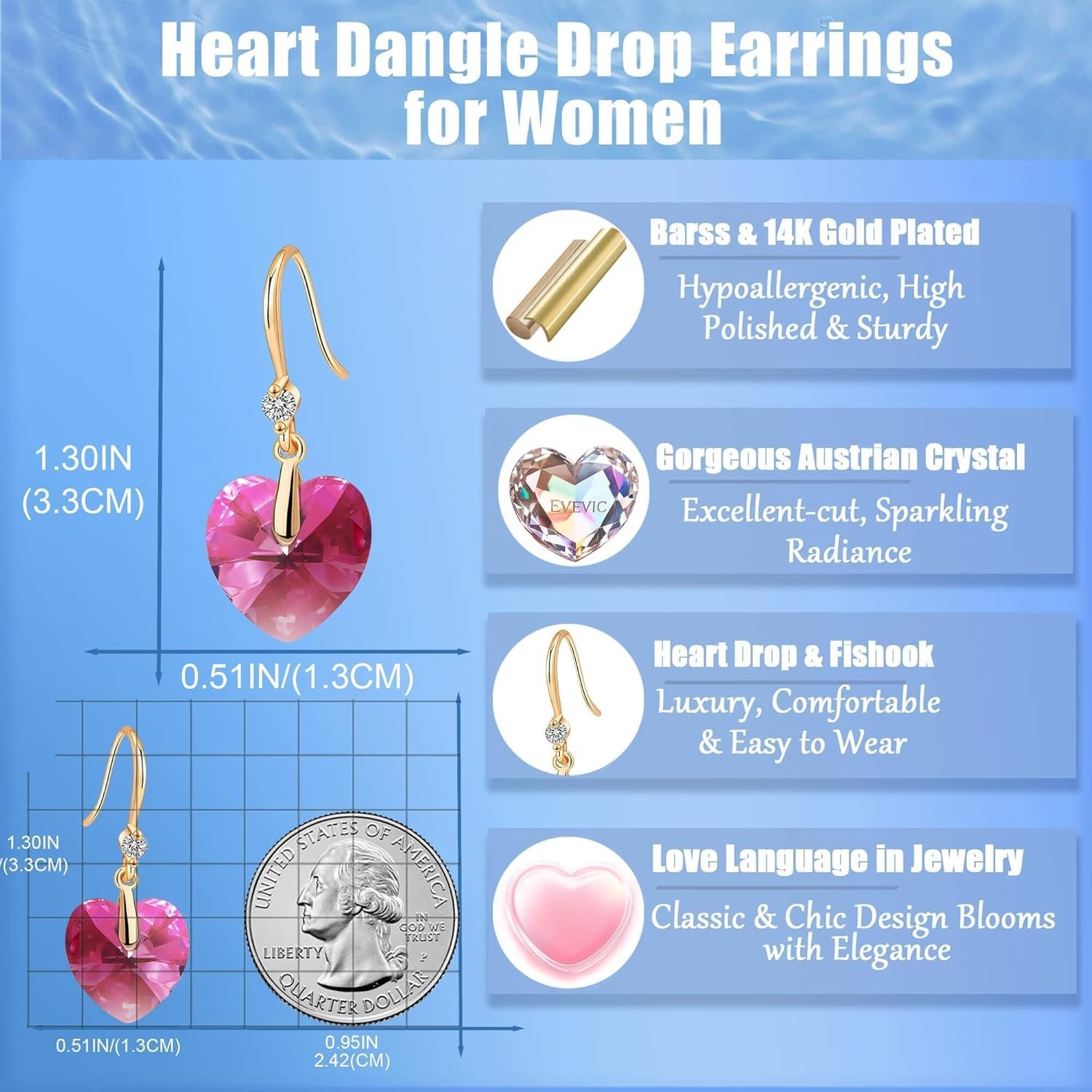 Be the first to review “Austrian Crystal Heart Dangle Drop Earrings for Women 14K Gold Plated Hook Earring Hypoallergenic Jewelry”