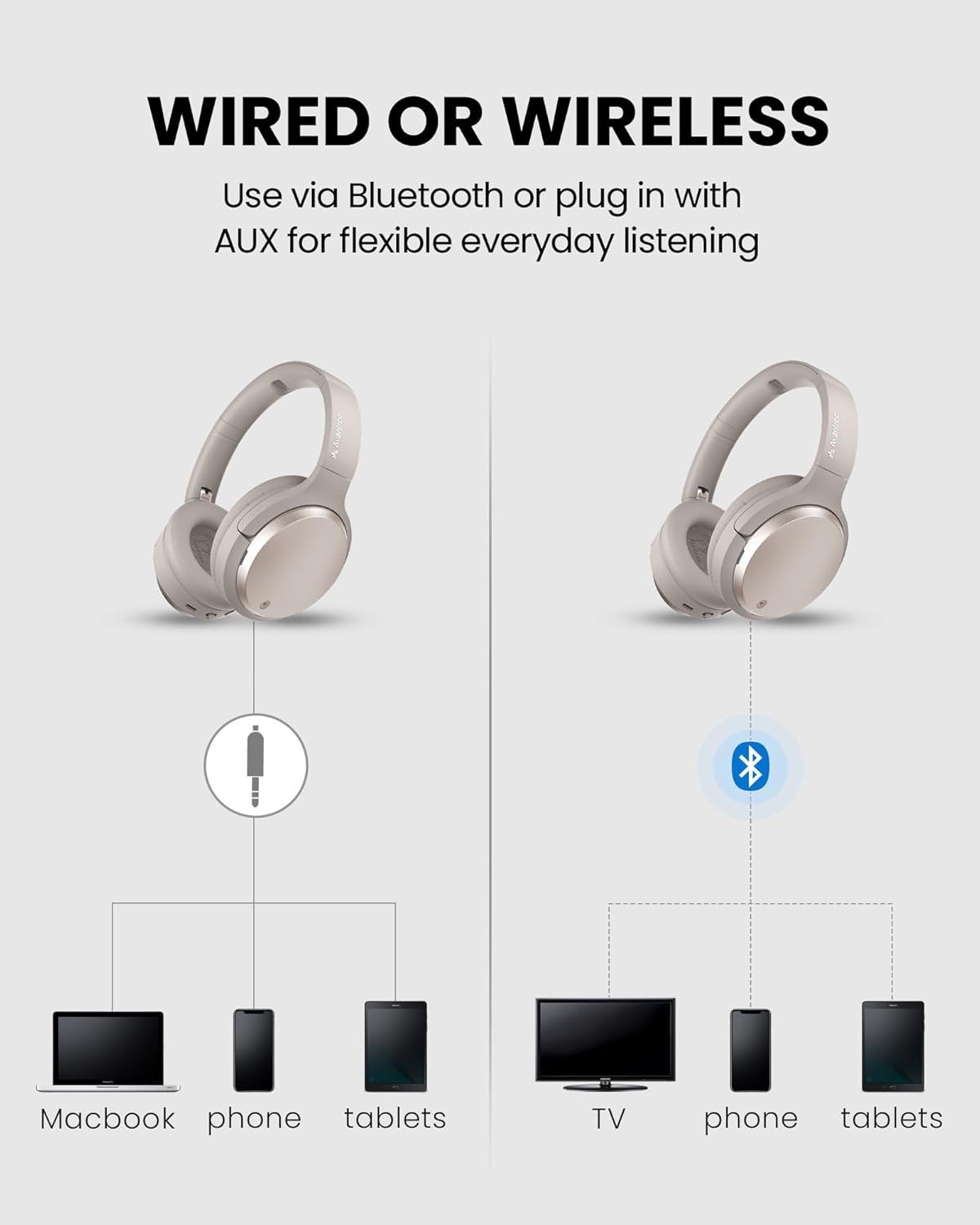 【Latest Generation Headphones】With the latest Bluetooth 5.3 chipset, these wireless headphones deliver stable, high-quality sound for TV, music, and calls, and can be upgraded via the Avantree app.