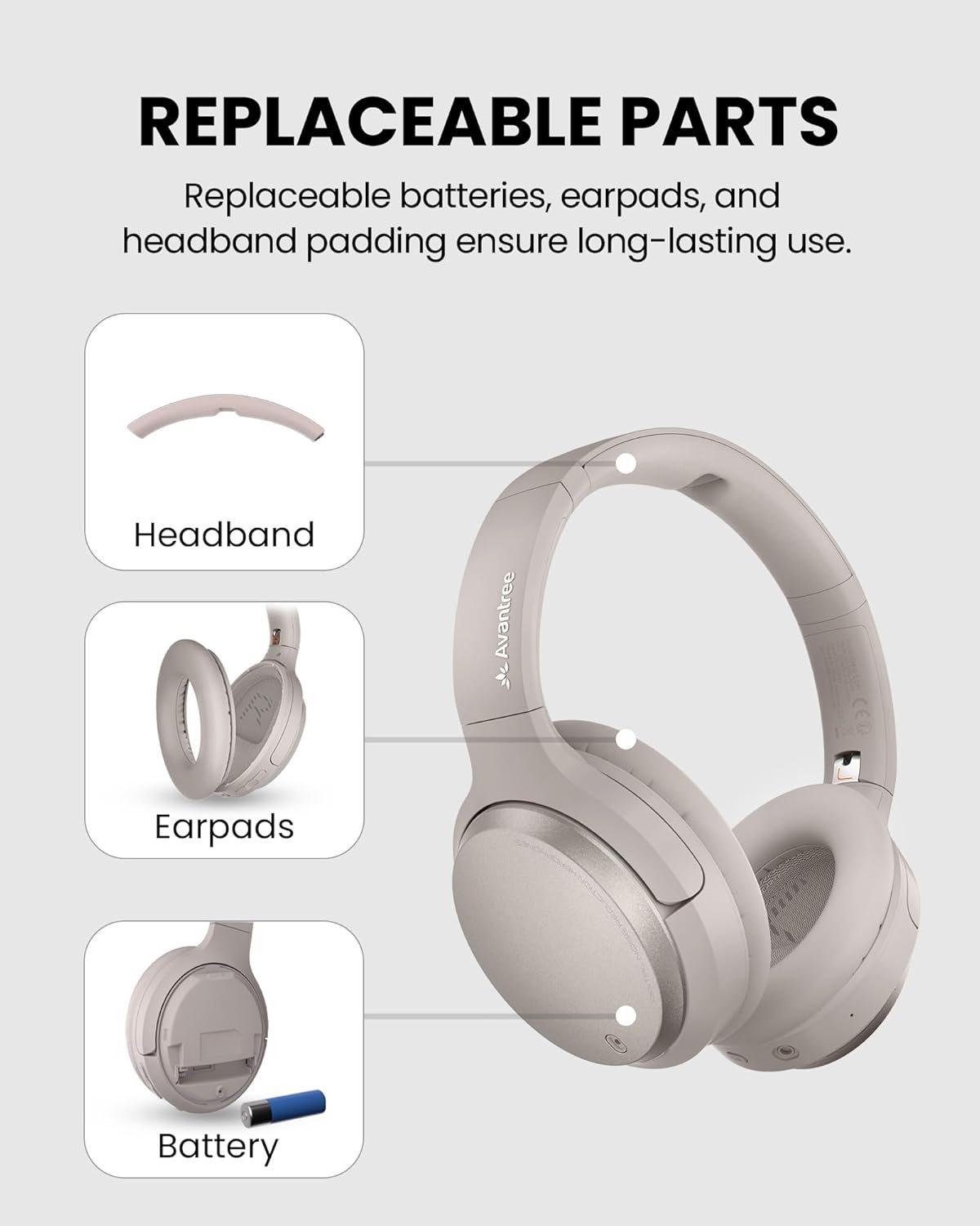 【Replaceable Parts for Longer Lifespan】Swap the earpads, battery, or headband padding when needed, keeping the headphones comfortable, durable, and ready for years.