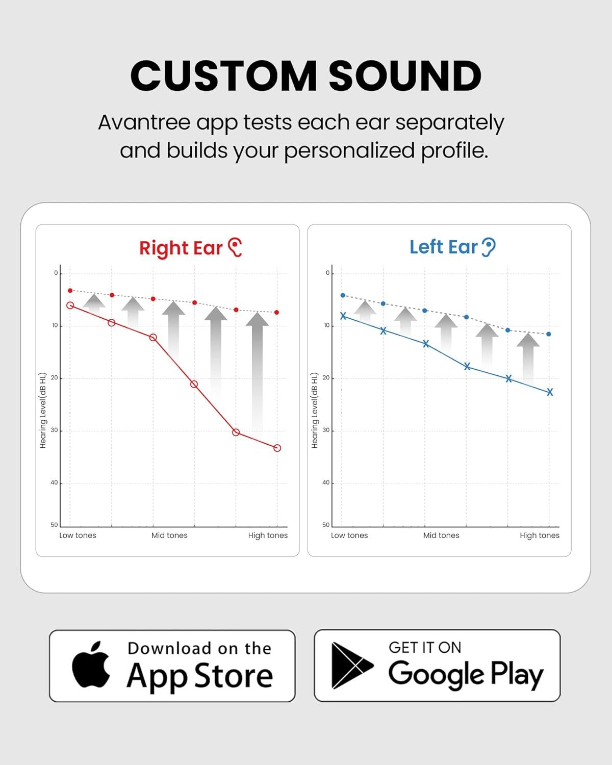 【Personalized Sound Profile】A quick test in the Avantree app measures each ear separately and applies compensation, creating a custom profile that delivers clearer, more natural listening for you.