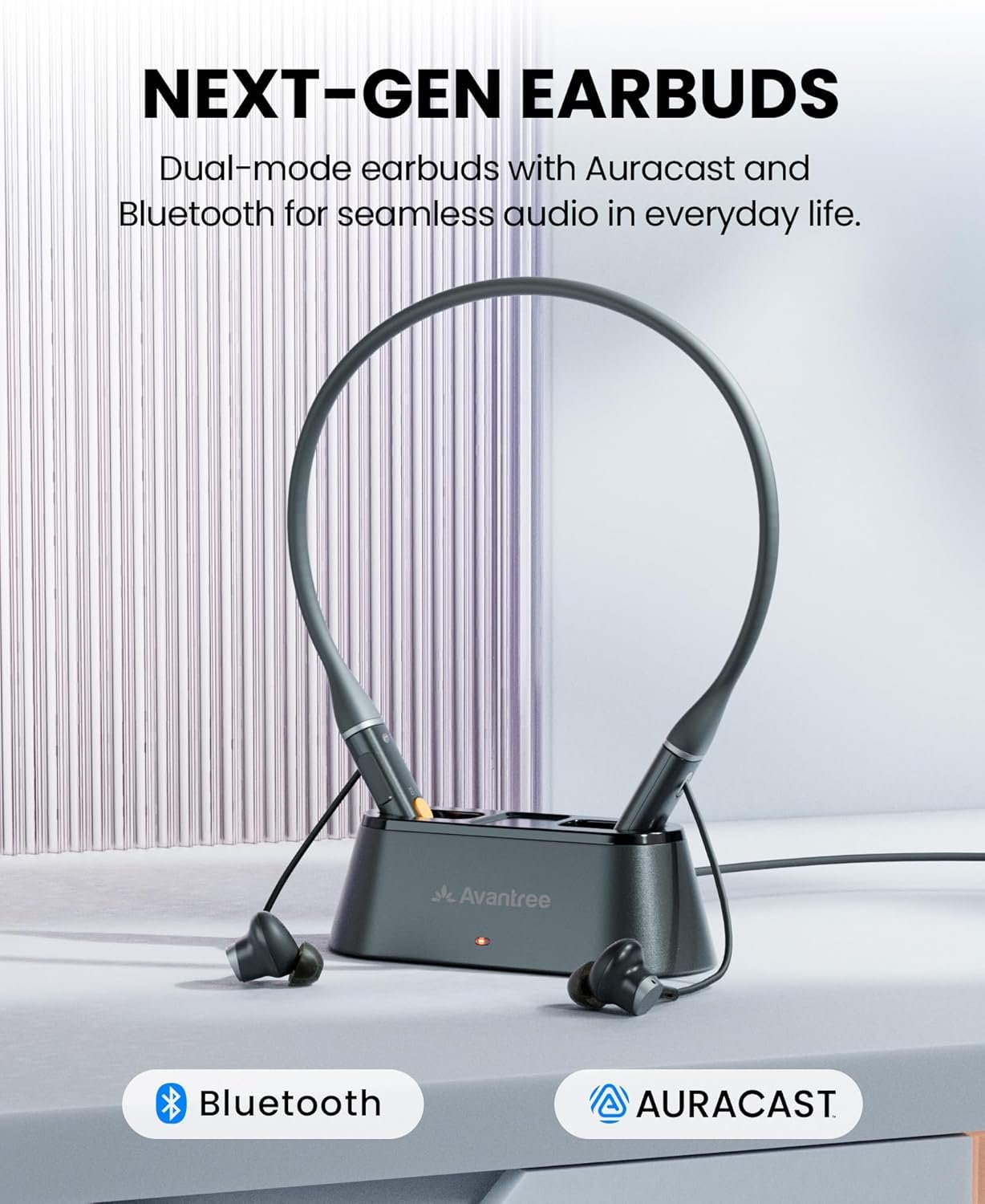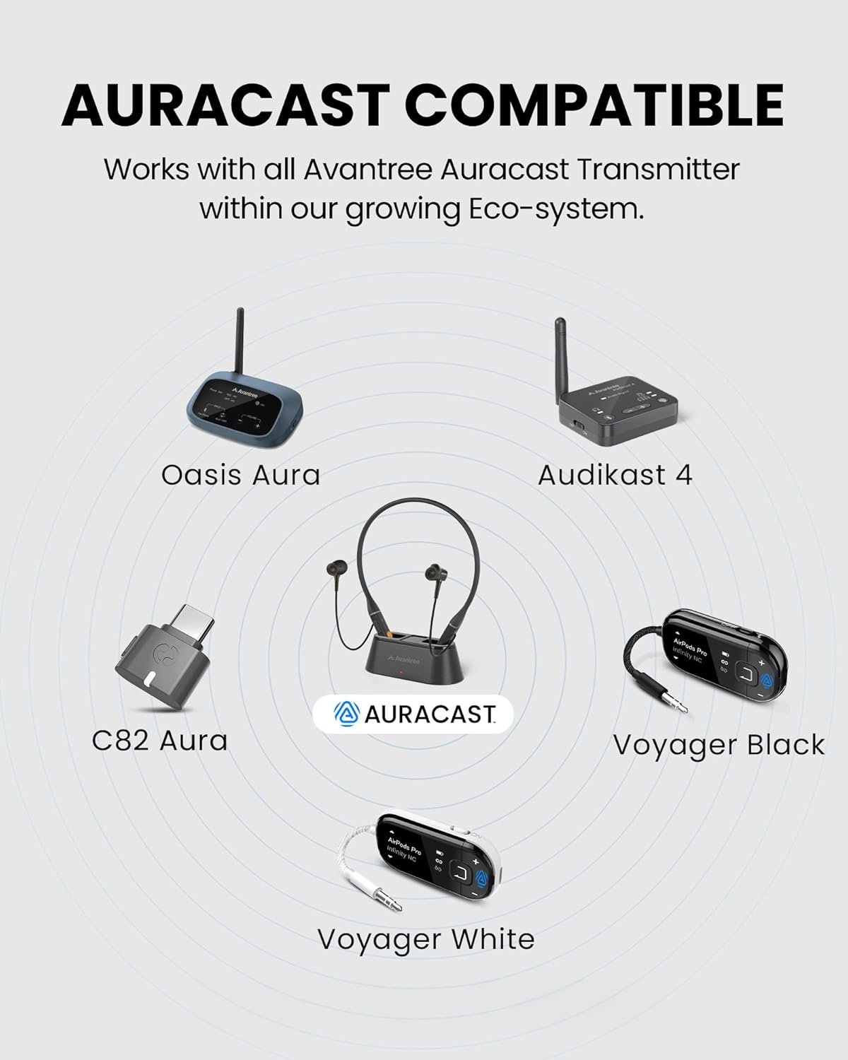 【Auracast Ecosystem Ready】Works with Auracast-enabled transmitters and audio sources from Avantree and other brands, supporting flexible multi-listener setups and future home TV audio upgrades.