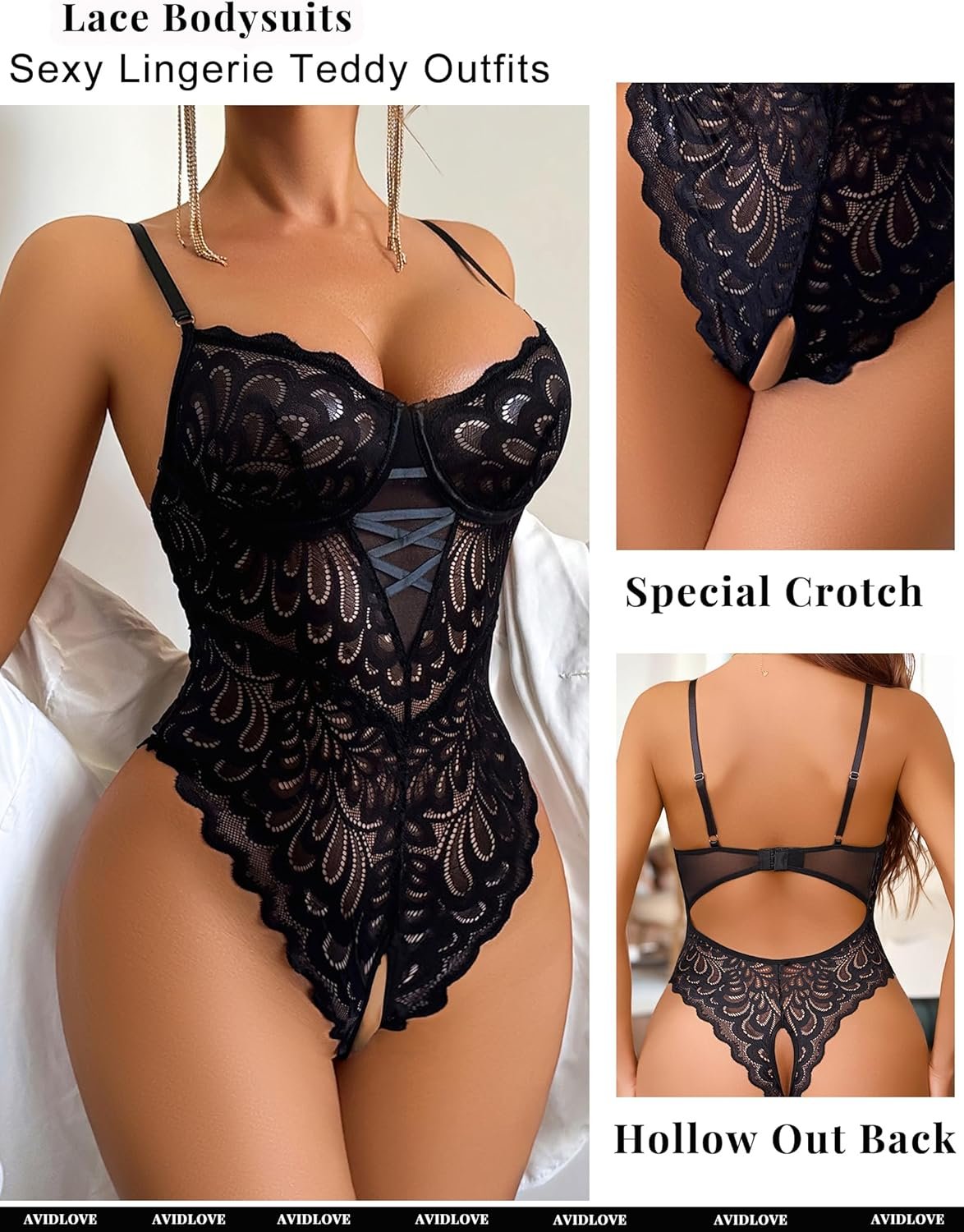 Avidlove Lingerie For Women Lace Bodysuits Deep V Teddy One Piece Outfits S-XXL Lingerie For WomenLingerie For Women