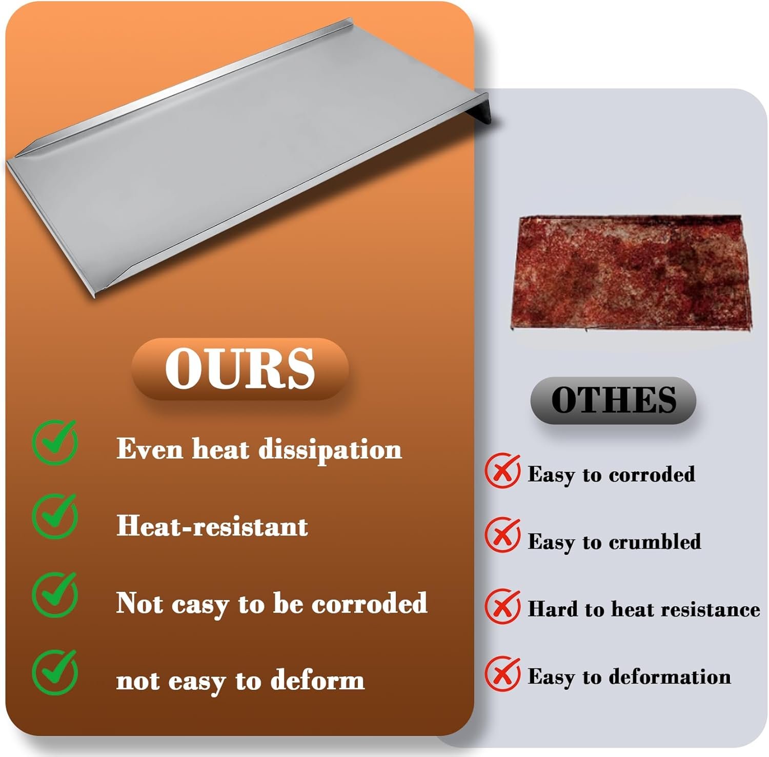 Superior Quality & Durability: The BAC012 Drip Pan Heat Baffle is constructed from high-quality stainless steel, while the BAC507 Drip Tray Liners are made from aluminum. Both materials are strong, resistant to corrosion, and built to withstand high temperatures and harsh outdoor elements. This ensures long-lasting performance and protects your grill investment.