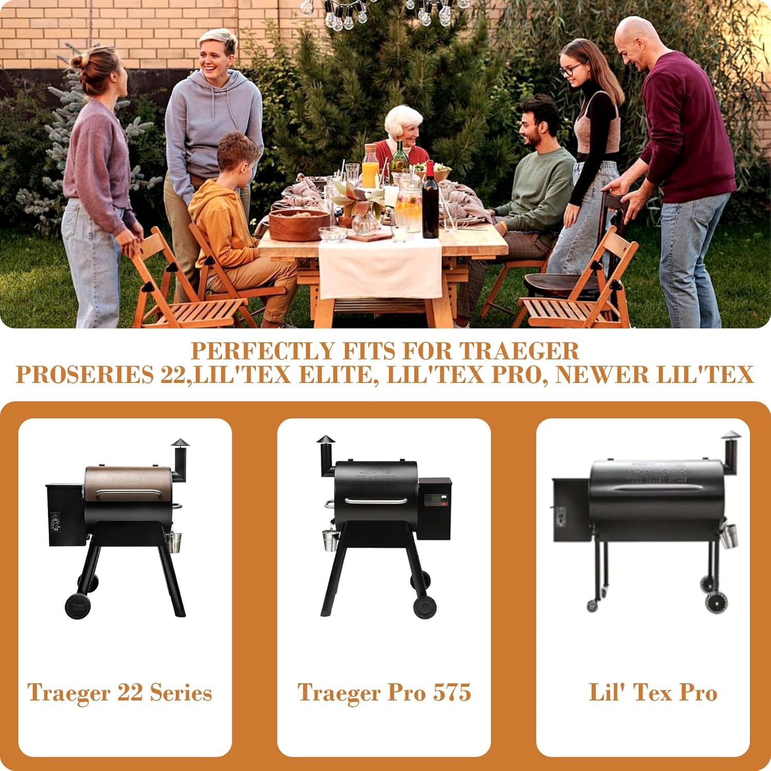 It also fits Pro Lil Tex Elite (Gen 2), Lil Tex Elite, Lil Tex Limited Edition, Longhorn Steer, Ridgeland 572, Lonestar, Lil Tex Elite 22, Lil Tex, XL, Lil Tex Pro, Lil Pig, Texas Elite, Traeger Roll Top, Traeger Professional, BBQ Pig, and Mesa 22 (BCA070). Please verify your grill model before purchase.