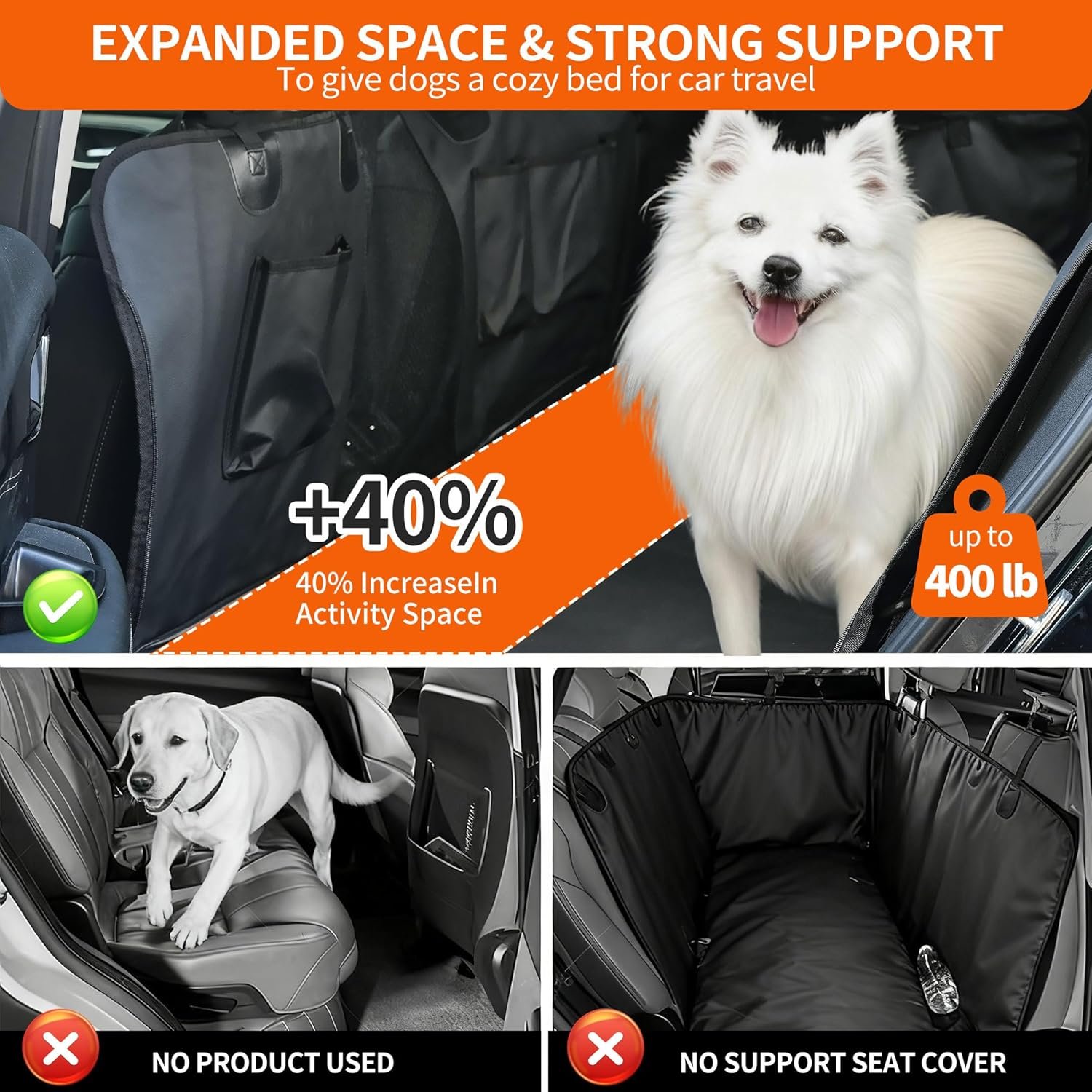 [HARD-BOTTOM HAMMOCK] Up to 400 lbs carrying capacity. Perfect for Large/Multiple dogs. Foldable design.