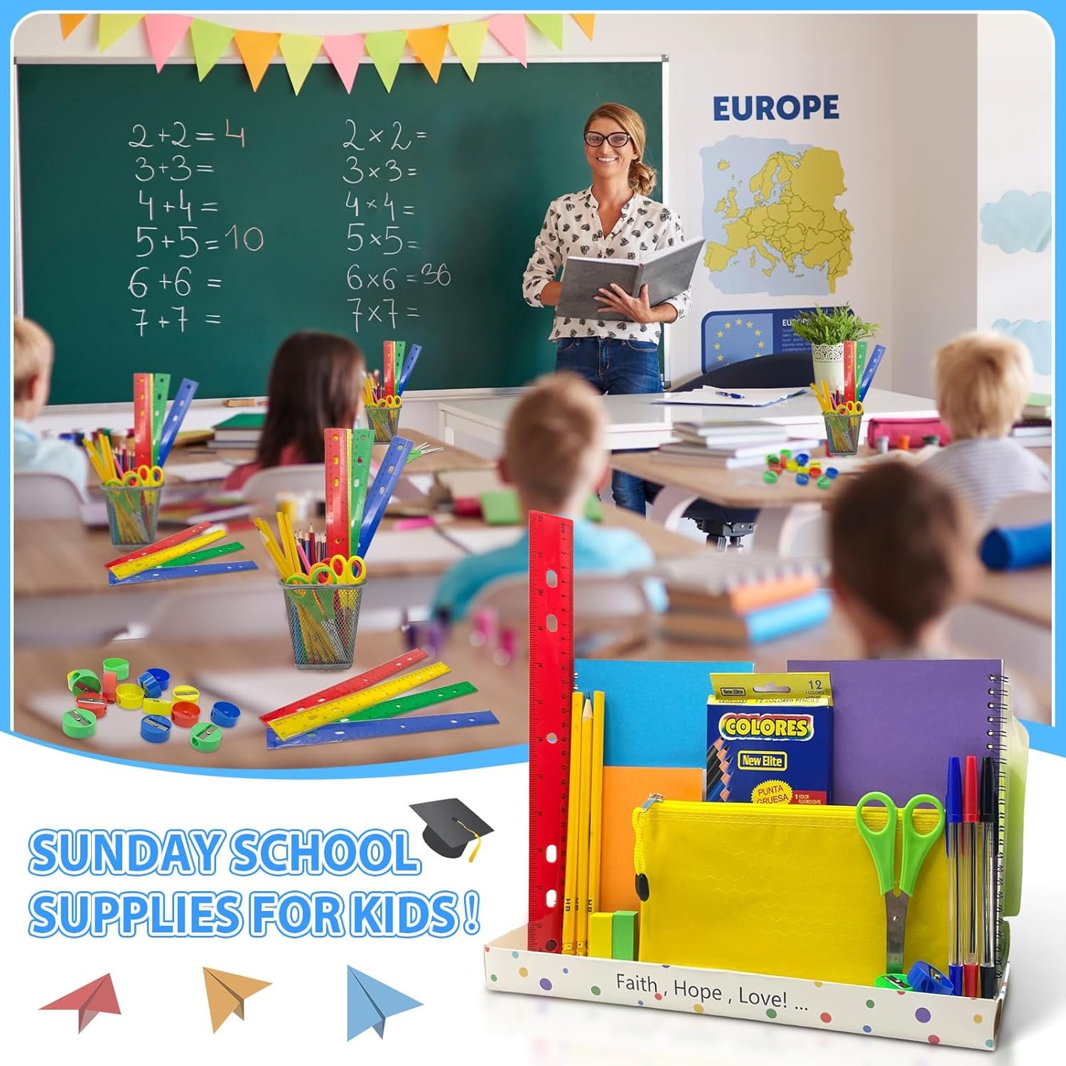All-in-One Sunday School Supply Box: This bundle is specifically designed for use in church and Sunday school classrooms, this school supply bundle includes all the essential items required for classroom success. Whether it’s coloring, writing, or taking notes, this comprehensive kit ensures your child is well-equipped and ready to tackle any assignment or project