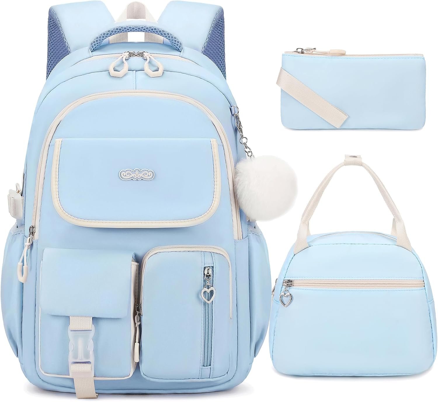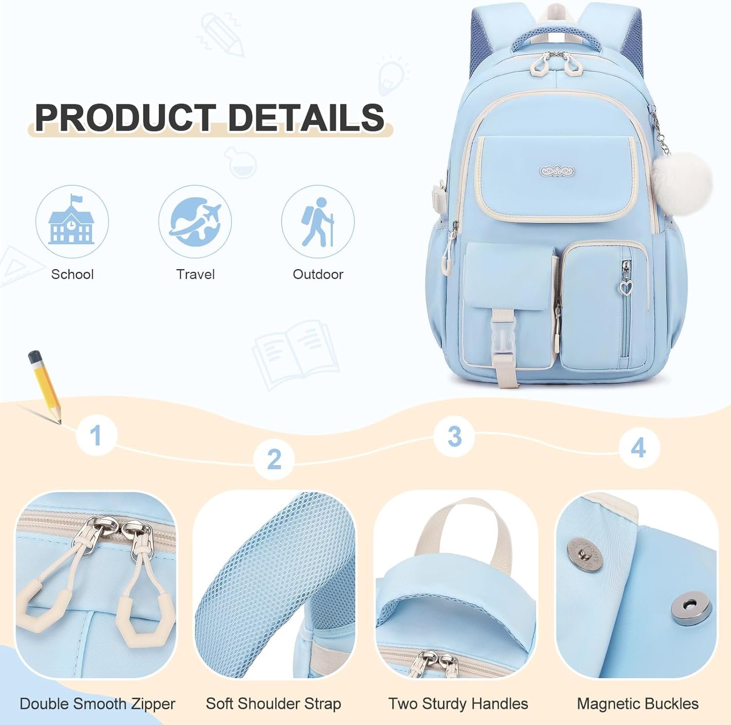 【Perfect Girls Backpack Set】This 3pcs kids backpacks for girls set is the perfect set for your child. It provides a one-stop solution for children to meet their school, travel and daily life needs. The classic contrast color design and cute pom pom pendant are simple yet unique, making them an ideal choice for every girl. It is very suitable for girls aged 6-18, especially for school, travel and summer camp.
