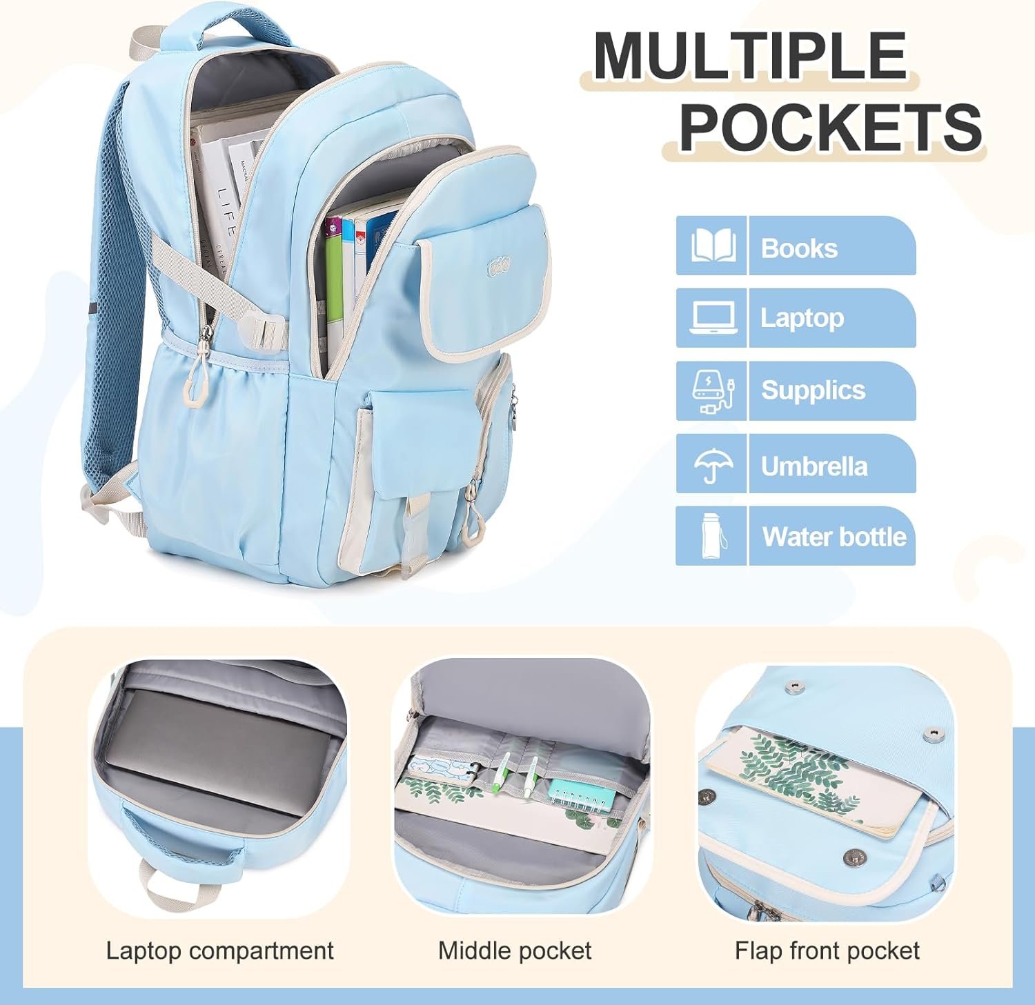 【High Quality and Durable Material】Our school backpack for teen girls is made of safe and durable high-density nylon fabric, soft and silky, wear-resistant and tear-resistant, sturdy and durable, safe and odorless, waterproof and easy to clean. The lightweight and soft girls bookbag will give you a comfortable wearing experience. High-quality metal zippers and finely reinforced stitching process ensure long-term use.