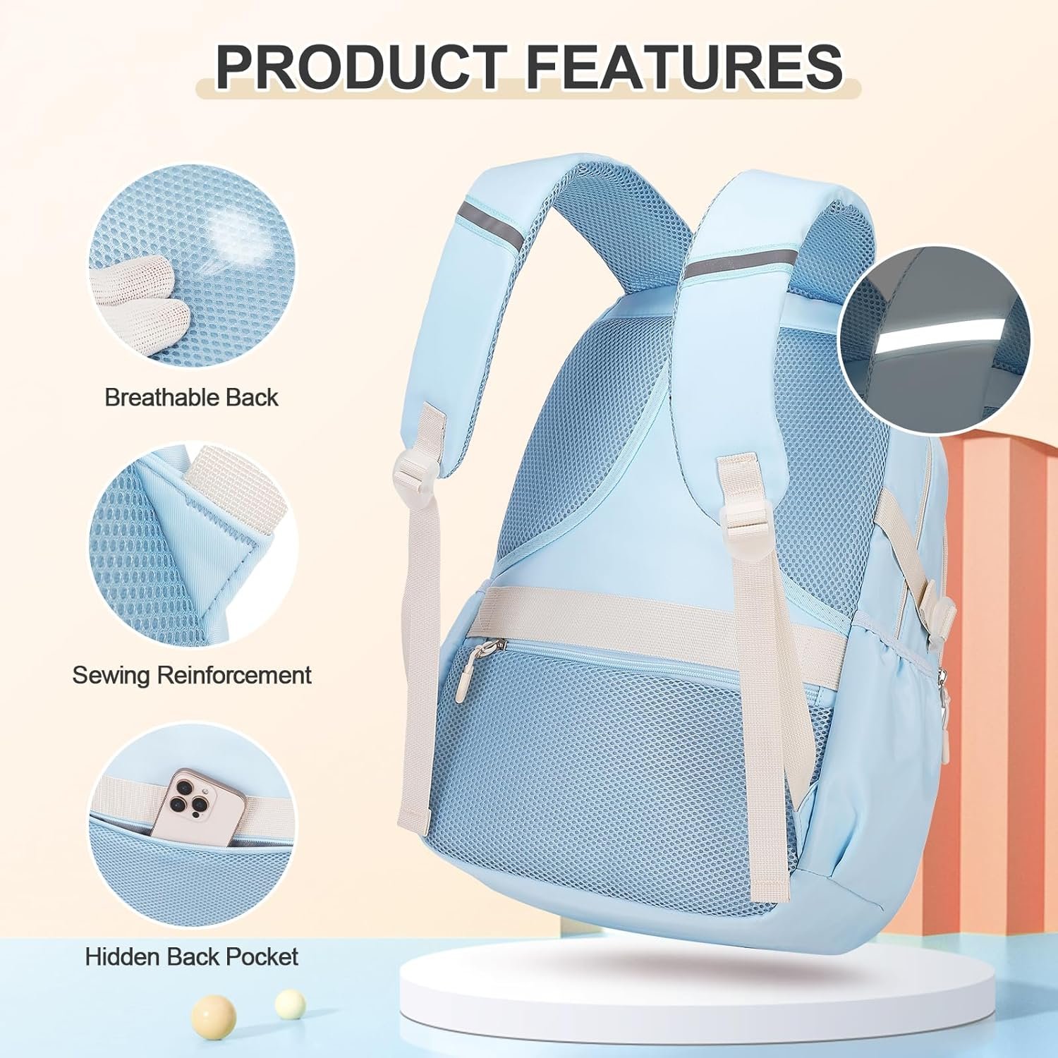 【Comfortable Design】This girls backpack for middle school adopts an ergonomic design. S-shaped shoulder straps and back area are equipped with breathable mesh, dry and breathable, and can effectively disperse the carrying pressure and reduce the burden on the shoulders and back. The reflective strips on the shoulder straps enhance visibility during nighttime walking or cycling, improving safety.
