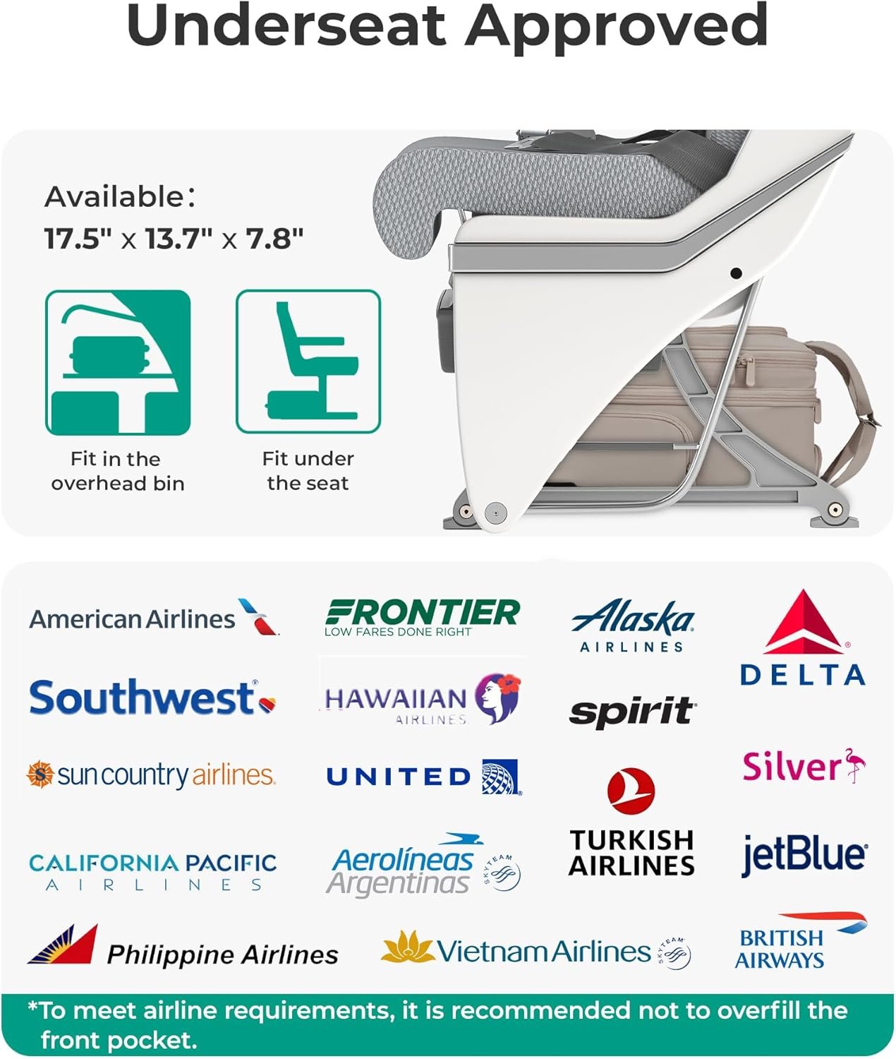 Airline-Approved Underseat Size: This rolling underseat luggage complies with the personal item size requirements of most airlines, it would easily and comfortably fit under an airplane seat while maintaining convenient accessibility. Making it an ideal travel companion for avoiding the hassle of check-in queues. Dimensions: 17.5×13.7×7.8 inches