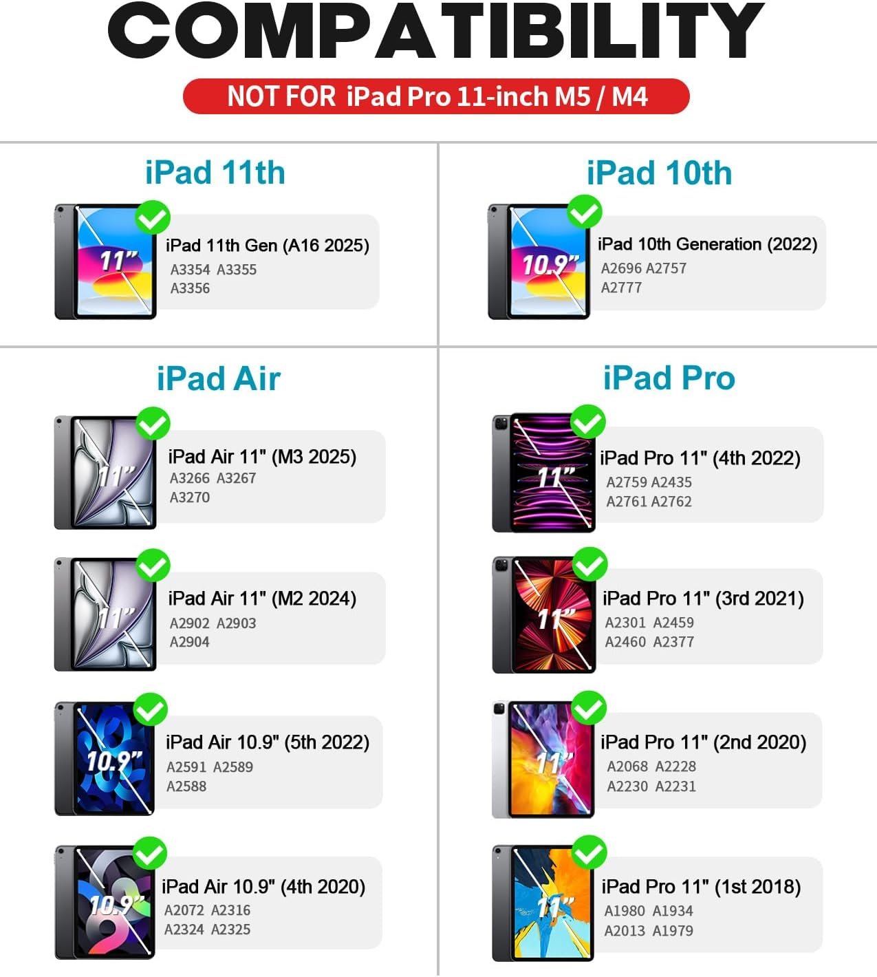 Compatibility – This premium slim keyboard case is compatible with 2025 iPad 11th Generation A16 – (A3354, A3355, A3356), 2022 iPad 10th Generation 10.9 inch (A2696, A2757, A2777), 2025 iPad Air 11 Inch M3 – (A3266, A3267, A3270) 2024 iPad Air 11-inch M2 (A2902, A2903, A2904), 2022 iPad Pro 11 inch 4th Generation (A2759, A2761, A2435, A2762), 2022 iPad Air 5th Gen 10.9 inch (A2588, A2589, A2591), 2021 iPad Pro 11 inch 3rd Generation – (A2377, A2459, A2301, A2460), 2020 iPad Pro 11 inch 2nd Generation – (A2228, A2068, A2230, A2231), 2020 iPad Air 4th Gen 10.9 inch (A2316, A2324, A2325, A2072), 2018 iPad Pro 11 inch 1st Generation – (A1980, A2013, A1934, A1979)