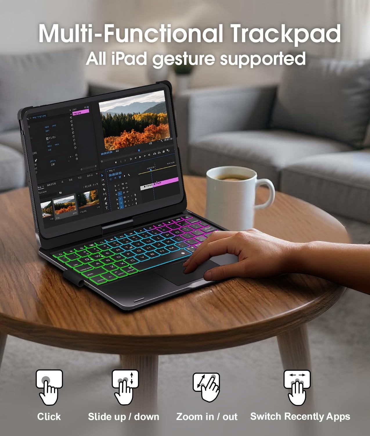 Multi-Touch Trackpad – iPad A16 case with keyboard features a large multi-touch trackpad for convenient navigation and flexible gesture control. Enjoy browsing, designing, or drafting with unparalleled convenience. Easily lock the trackpad while typing by pressing fn+T key to avoid accidental touches, and press again to unlock