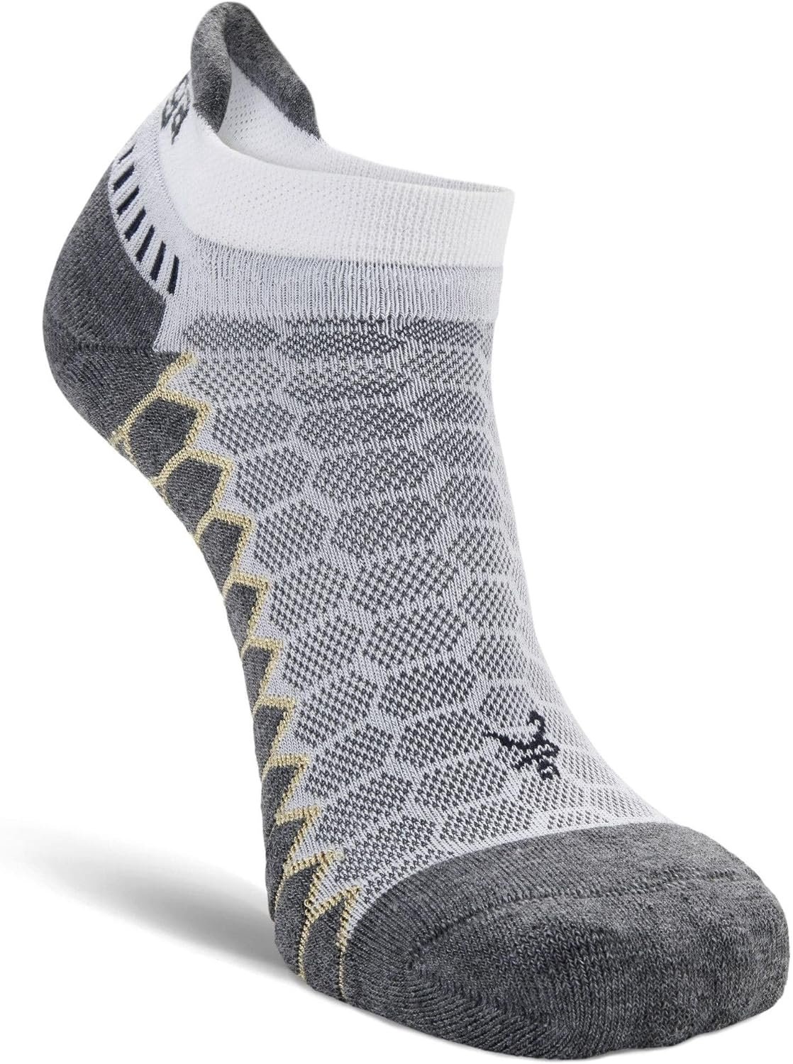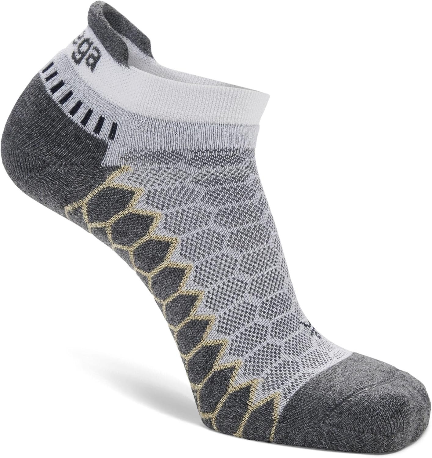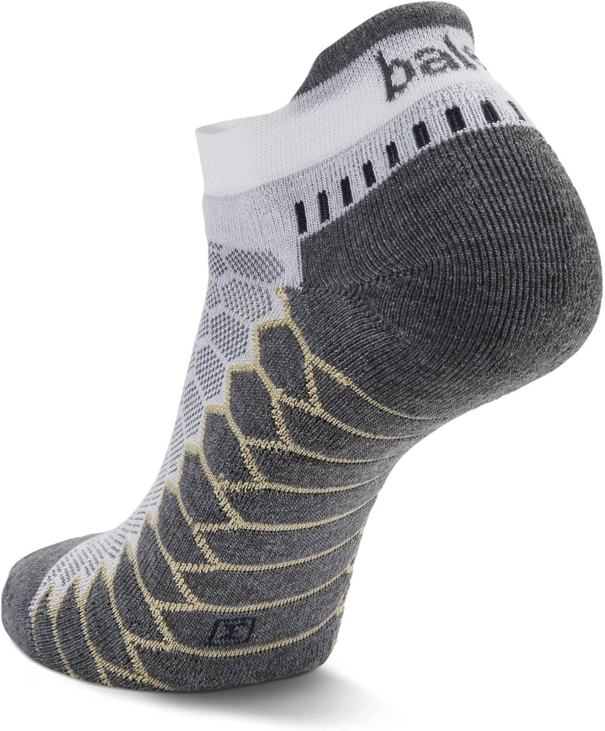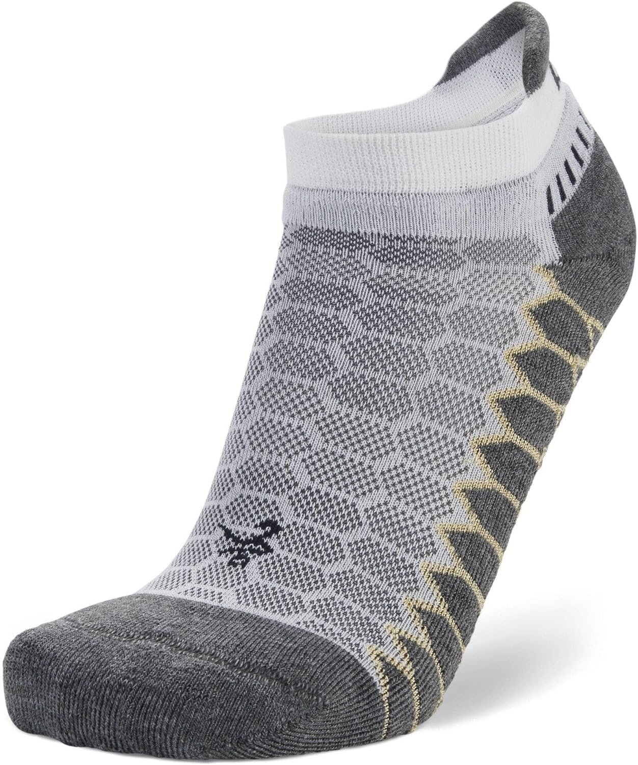 The Balega Silver No-Show Compression-Fit Running Sock for Men and Women provides moisture-management and comfort without sacrificing fit and performance. Silver ions are encapsulated in the proprietary Drynamix yarn blend to keep feet clean and dry. Constructed to mimic a running shoe, the varying tension of the fibers and knit patterns throughout the athletic sock lock in the heel and provide compressive arch support for grip and quick pick-up, while allowing the toes to move freely. The seamless, hand-linked toe box minimizes friction for blisters and chafing. A high heel tab and extra deep heel pocket ensures that the sock won’t slip down into the shoe. The Balega Silver No-Show Compression-Fit Running Sock features medium-volume cushioning, ensuring durability for extended training and endurance events.