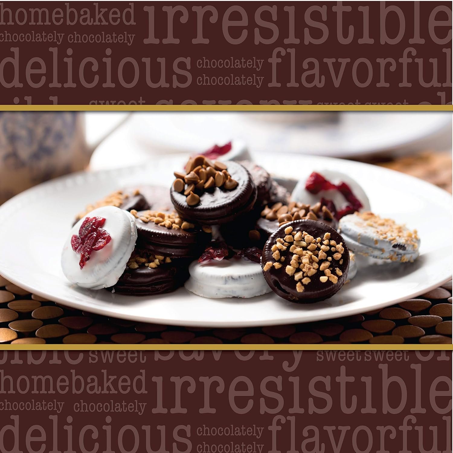 🍪 Beautiful gift box with 20 chocolate-covered cookies: Twenty delicious gourmet chocolate-covered sandwich cookies in 5 decadent flavors; cranberry, nut crunch, coconut crunch, crushed peppermint, and rainbow chips. Bakery-fresh, ribbon wrapped, and ready to gift for anyone who loves cupcakes, donuts, desserts, and edible chocolates. From anniversary to appreciation, from college boys to company client, this beats all other foods, fruit, and flowers delivery.