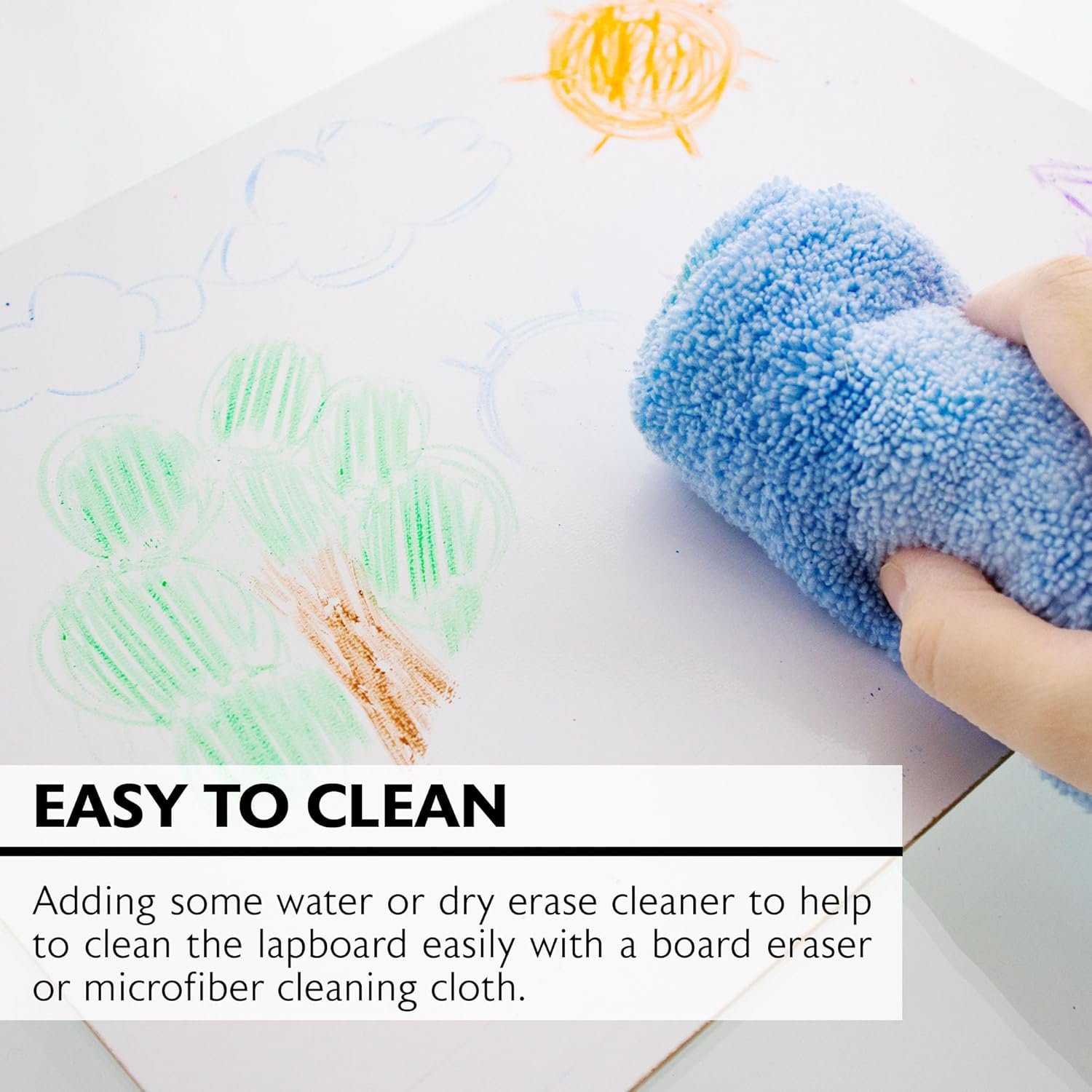 ⭐ EASY TO CLEAN. Clean using boards eraser or microfiber cleaning cloth. Adding some water or dry erase cleaner can help to clean the lapboard easily.