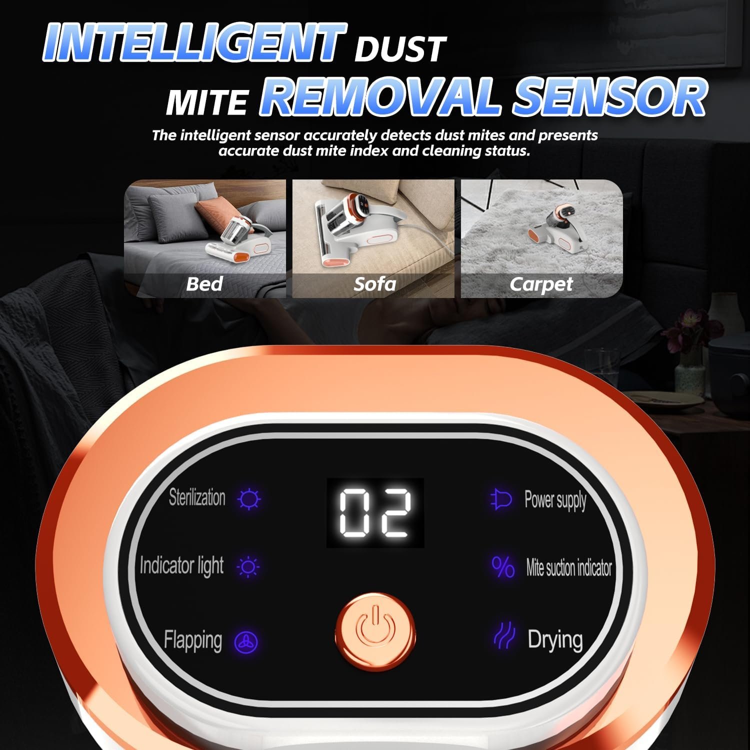 🚀【Smart Display】The mattress vacuum cleaner has two working modes-smart automatic and strong knocking mode. The smart display screen will intelligently display the cleanliness index according to the cleaning status, monitor the cleaning status in real time, meet different vacuuming effects, and easily remove surface or deep dust.