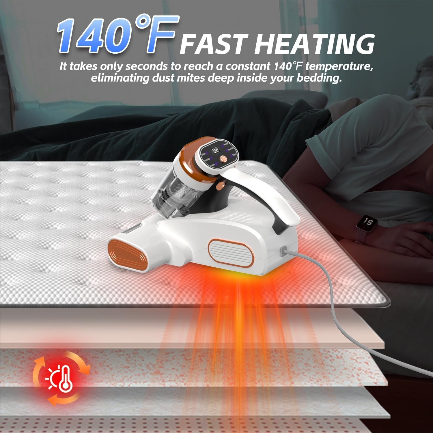 🚀【140℉ Heating】This mattress vacuum cleaner can quickly blow out hot air in just 5 seconds, with a temperature of up to 140°F (60°C), which can keep the mattress surface clean and dry, and is very suitable for families with pets and babies.