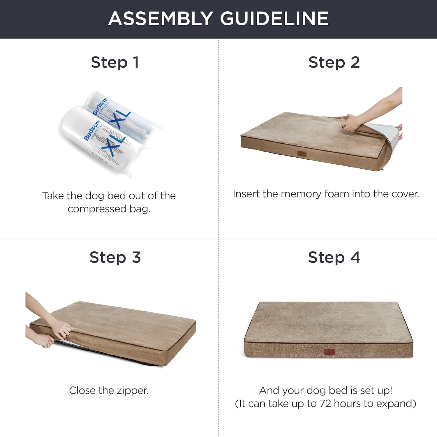 Easy Care Removable Washable Cover: Bedsure’s orthopedic dog bed features an easy-to-remove zippered washable cover that makes deep cleaning a breeze. Simply machine wash and tumble dry.